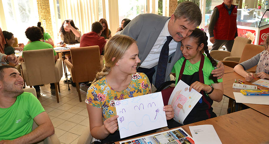 +1 Kafe’de yabancı öğrencileri ağırladıTURGUTLU Belediyesi Gençlik ve Eğitim Merkezi’nde faaliyetlerini sürdüren +1 Kafe, Avrupa Birliği’nin ‘Bir Işık da Sen Yak’ projesi kapsamında Turgutlu’ya ziyarete gelen 28 yabancı öğrenciyi ağırladı. Aralarında 7 Türk öğrencinin de bulunduğu öğrenciler, engelli öğrencilerle hayallerini çizdiler.