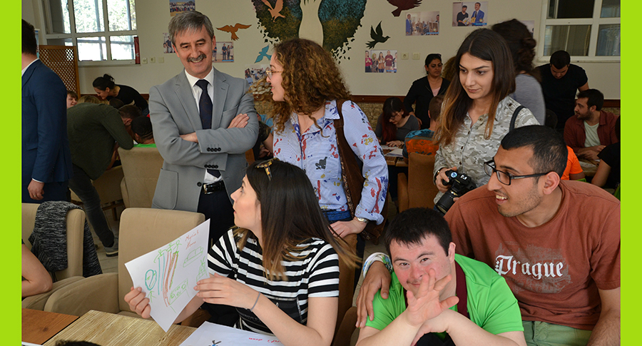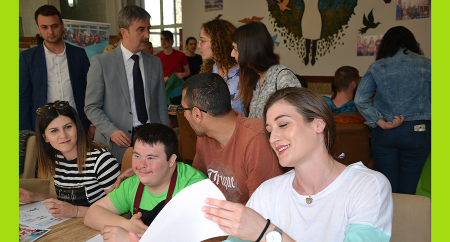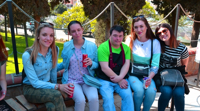 ‘Bir Işık da Sen Yak’ projesi kapsamında yer alan Romanya, Bulgaristan, Hırvatistan ve Litvanya’dan gelen 28 öğrenci ile 7 Türk öğrenci, +1 Kafe’de engelli öğrencileri ziyaret ettiler. Turgutlu Belediye Başkanı Turgay Şirin ve Belediye Sosyal İşler Müdürü Metin Akgül’ün de yer aldığı ziyarette yabancı öğrenciler ile engelli öğrenciler keyifli anlar yaşadı. Kültür ve engellier üzerine Turgutlu’ya gezi düzenleyen yabancı öğrenciler, engelli öğrencilerle hayallerini kağıda döktüler. Yabancı öğrenciler burada yapılan sosyal projeleri inceleme fırsatı buldu.