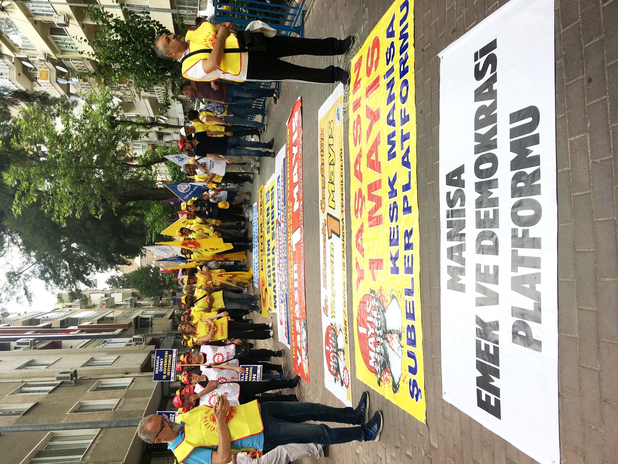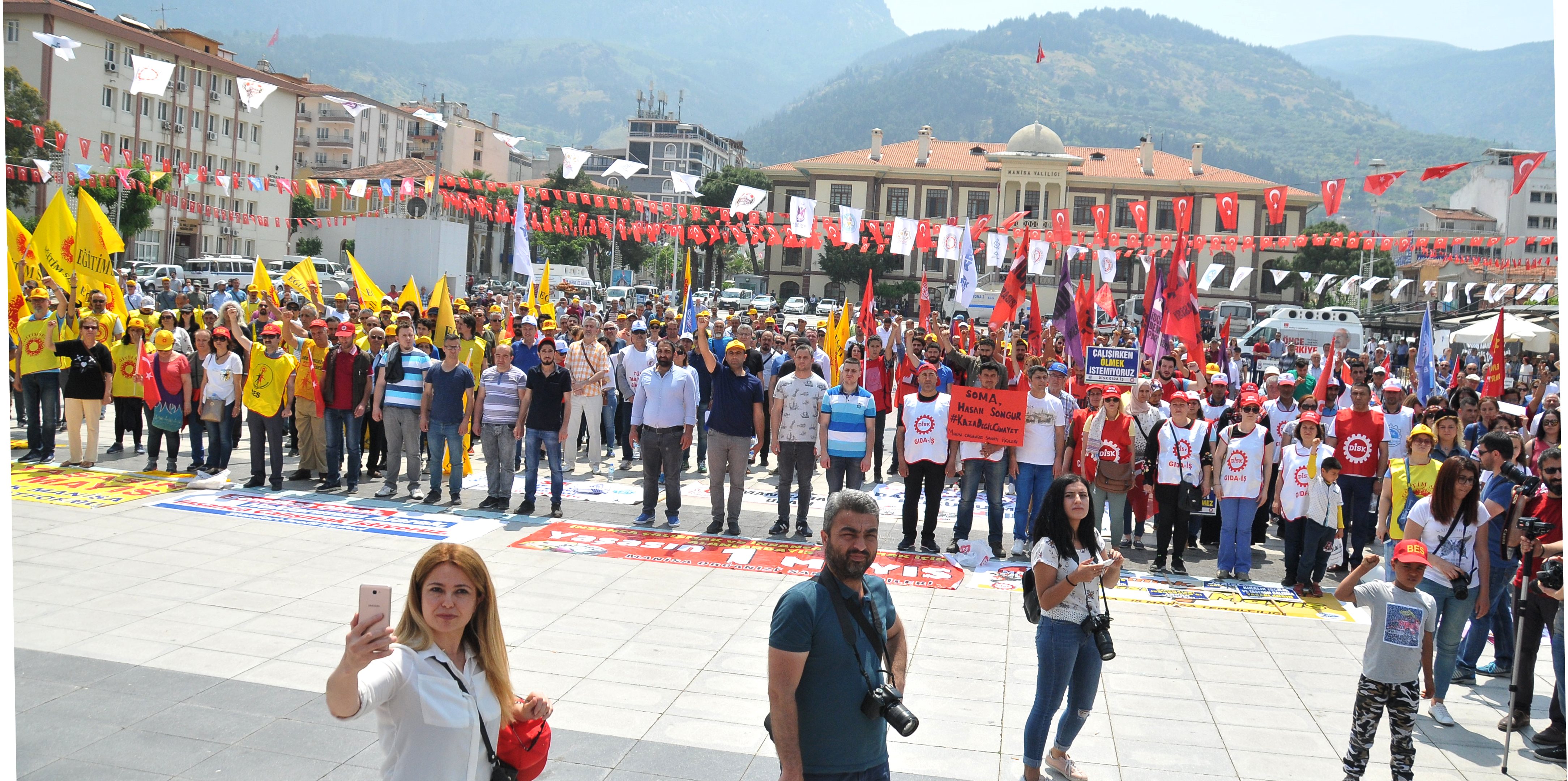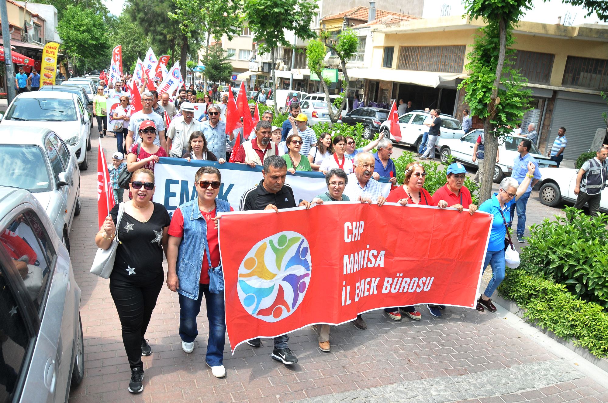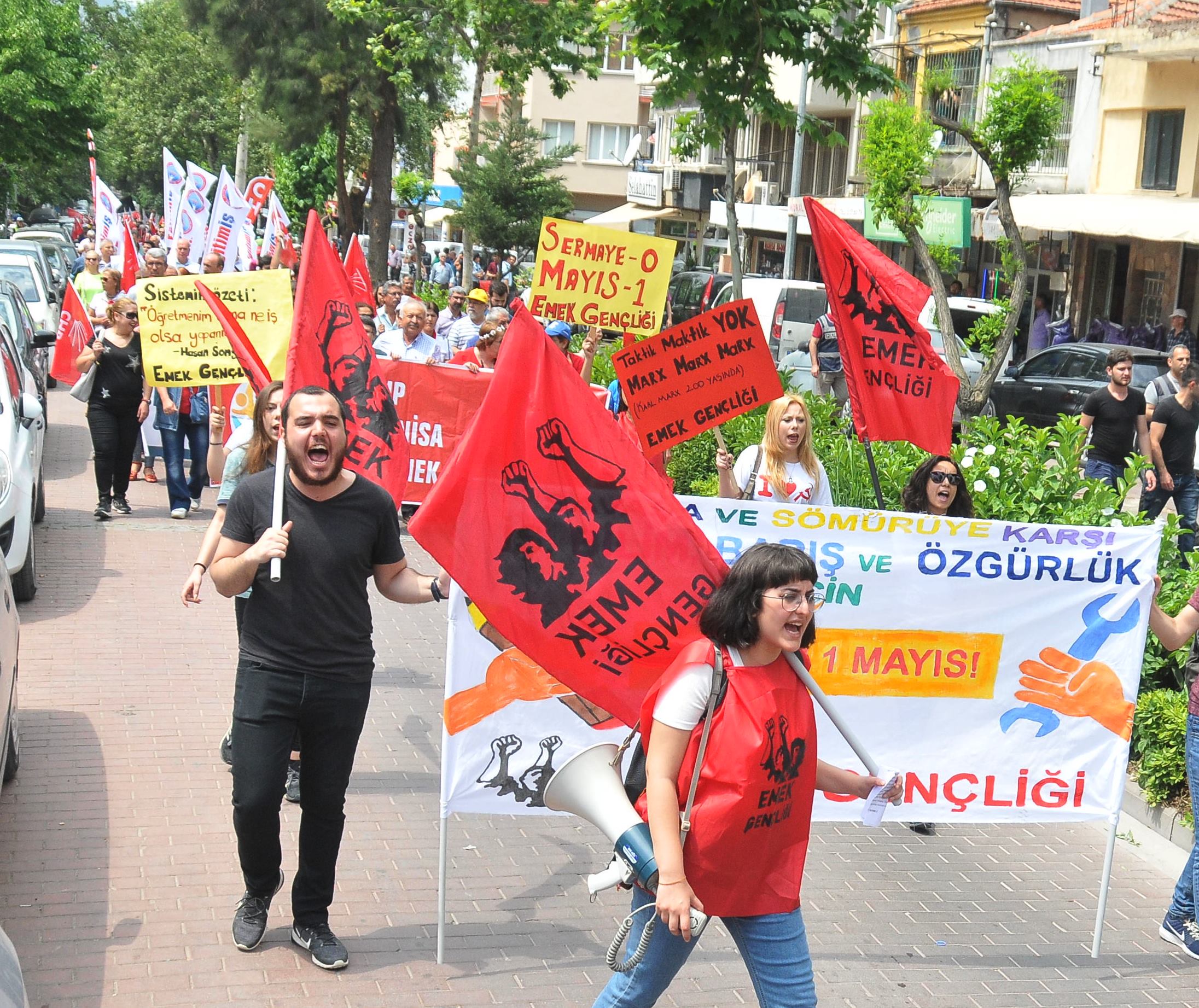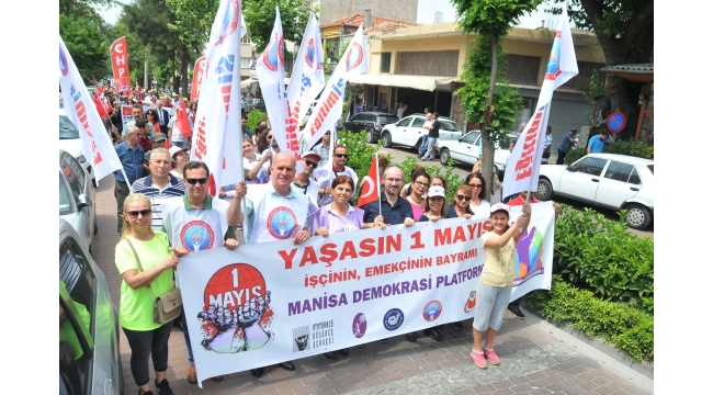 MANİSA’DA 1 MAYIS BÖYLE KUTLANDI TÜM ülke genelinde büyük coşkuyla kutlanan 1 Mayıs İşçi ve Emekçi bayramı Manisa’da 7’den 70’e katılımla yürüyüş ve sonrasında Cumhuriyet Meydanı'nda ki karnaval ile sonlandı. Miniklerde ellerindeki renga renk çiçek demeti ile renkli görüntü oluşturdu. Bazı çocuklarda alana geldiklerinde açlıklarını simitle geçiştirdi. CHP-KESK’e bağlı sendikaların yanı sıra Eğitim İş’de eyleme destek verdi. Yürüyüşe katılan bazı minik köpeklerde susuzluğu sahiplerince giderildi. CHP ‘nin kadın milletvekili Tur Yıldız Biçer’de katıldı. Manisa'da 1 Mayıs Emek ve Dayanışma Günü, birçok sendikanın, siyasi partinin ve sivil toplum kuruluşunun katılımıyla kutlandı. Saat 11.00'de tarihi Sultan Camii'nin önünde toplanmaya başlayan kalabalık, polis tarafından arandı. Sendikaların, siyasi partiler ile sivil toplum örgütlerinin üyelerinin yanlarında getirdikleri pankartlar ile dövizler de incelendi. Saat 12.00'ye kadar alanda toplanan yaklaşık 700 kişilik grup pankartlar ve sloganlarla Cumhuriyet Meydanı’na yürüyüşe geçti. Yürüyüş boyunca ‘Birleşe birleşe kazanacağız’, ‘Yaşasın 1 Mayıs’ sloganları atıldı, ‘İşimi ekmeğimi geri istiyorum’, ‘Sendika haktır engellenemez’, ‘Abdestli kapitalizme hayır’ pankartları taşındı. Emek ve Dayanışma Platformu tarafından düzenlenen yürüyüşüre CHP Manisa Milletvekili Tur Yıldız Biçer de destek verdi. CHP’li Biçer ve yürüyüşe katılanlar yol boyunca zaman zaman birlikte halay çekti.Şehzadeler ilçesindeki Cumhuriyet Meydanı'na gelen topluluk, mitingin yapılacağı Milli Egemenlik Anıtı'nın önünde, alana tekrar aranarak alındı. 1 Mayıs İşçi Bayramı’nı kutlayanları izleyen simit satıcısı da dikkat çekti. Kafasına simit tepsisini taşıyan işçi, bayramı kutlayanları uzaktan izledi. Miting alanını dolduran kalabalığa konuşma yapan DİSK Gıda İş İzmir Bölge Temsilcisi Gürsel Köse, emeklerine, işlerine ve özgürlüğe sahip çıkmak için alanlarda olduklarını söyledi. Ahmet ÜNSAL/Manisa