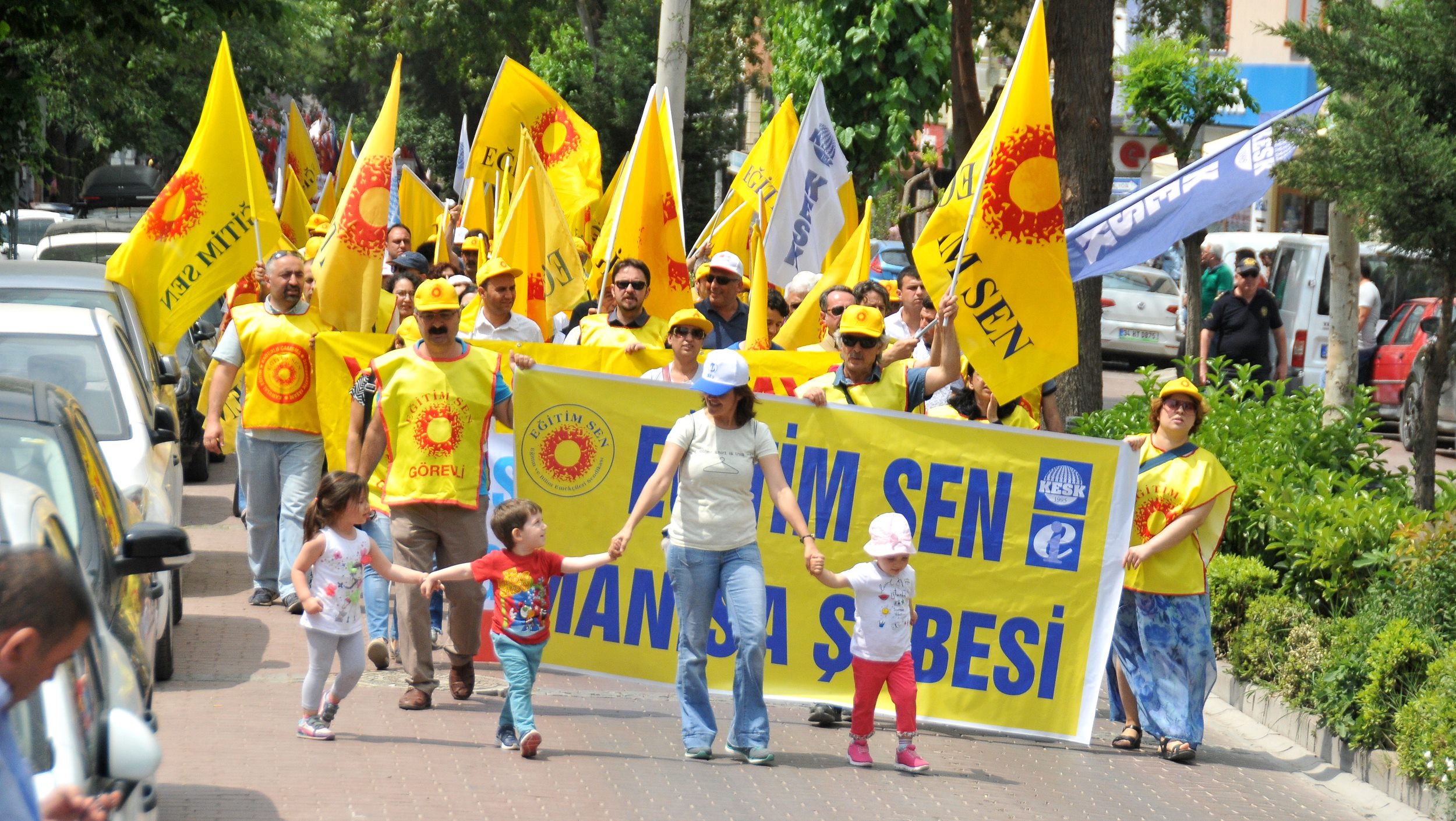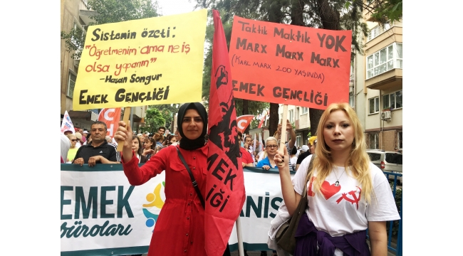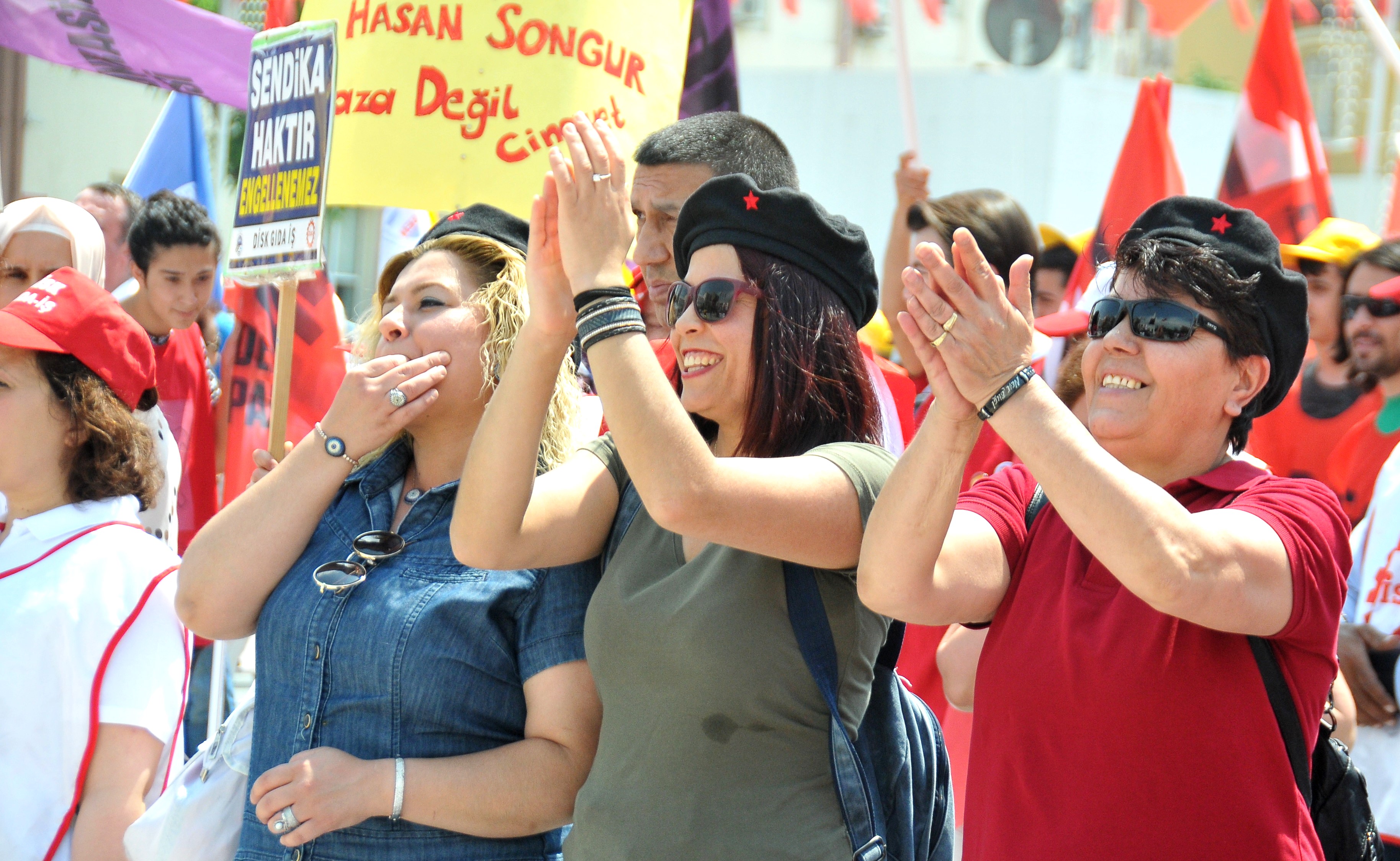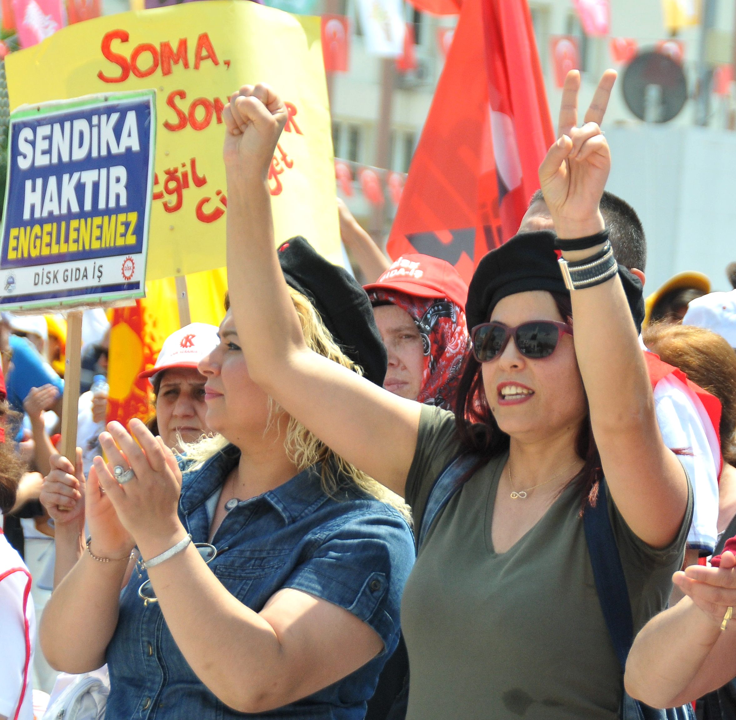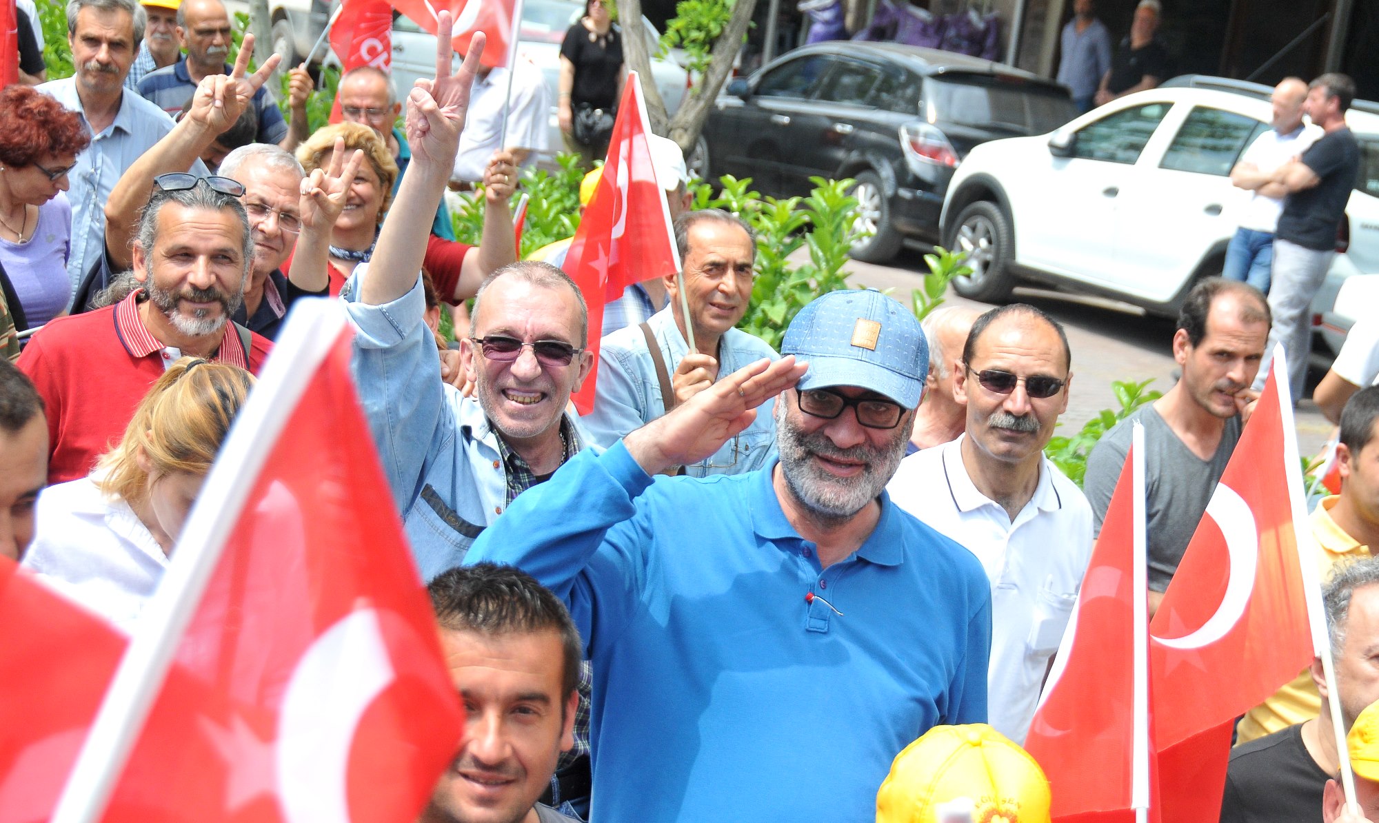 MANİSA’DA 1 MAYIS BÖYLE KUTLANDI TÜM ülke genelinde büyük coşkuyla kutlanan 1 Mayıs İşçi ve Emekçi bayramı Manisa’da 7’den 70’e katılımla yürüyüş ve sonrasında Cumhuriyet Meydanı'nda ki karnaval ile sonlandı. Miniklerde ellerindeki renga renk çiçek demeti ile renkli görüntü oluşturdu. Bazı çocuklarda alana geldiklerinde açlıklarını simitle geçiştirdi. CHP-KESK’e bağlı sendikaların yanı sıra Eğitim İş’de eyleme destek verdi. Yürüyüşe katılan bazı minik köpeklerde susuzluğu sahiplerince giderildi. CHP ‘nin kadın milletvekili Tur Yıldız Biçer’de katıldı. Manisa'da 1 Mayıs Emek ve Dayanışma Günü, birçok sendikanın, siyasi partinin ve sivil toplum kuruluşunun katılımıyla kutlandı. Saat 11.00'de tarihi Sultan Camii'nin önünde toplanmaya başlayan kalabalık, polis tarafından arandı. Sendikaların, siyasi partiler ile sivil toplum örgütlerinin üyelerinin yanlarında getirdikleri pankartlar ile dövizler de incelendi. Saat 12.00'ye kadar alanda toplanan yaklaşık 700 kişilik grup pankartlar ve sloganlarla Cumhuriyet Meydanı’na yürüyüşe geçti. Yürüyüş boyunca ‘Birleşe birleşe kazanacağız’, ‘Yaşasın 1 Mayıs’ sloganları atıldı, ‘İşimi ekmeğimi geri istiyorum’, ‘Sendika haktır engellenemez’, ‘Abdestli kapitalizme hayır’ pankartları taşındı. Emek ve Dayanışma Platformu tarafından düzenlenen yürüyüşüre CHP Manisa Milletvekili Tur Yıldız Biçer de destek verdi. CHP’li Biçer ve yürüyüşe katılanlar yol boyunca zaman zaman birlikte halay çekti.Şehzadeler ilçesindeki Cumhuriyet Meydanı'na gelen topluluk, mitingin yapılacağı Milli Egemenlik Anıtı'nın önünde, alana tekrar aranarak alındı. 1 Mayıs İşçi Bayramı’nı kutlayanları izleyen simit satıcısı da dikkat çekti. Kafasına simit tepsisini taşıyan işçi, bayramı kutlayanları uzaktan izledi. Miting alanını dolduran kalabalığa konuşma yapan DİSK Gıda İş İzmir Bölge Temsilcisi Gürsel Köse, emeklerine, işlerine ve özgürlüğe sahip çıkmak için alanlarda olduklarını söyledi. Ahmet ÜNSAL/Manisa