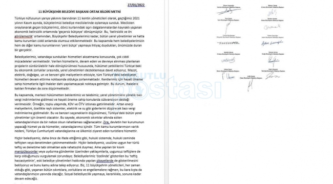 11 BÜYÜKŞEHİR BELEDİYE BAŞKANI ORTAK BİLDİRİ METNİ