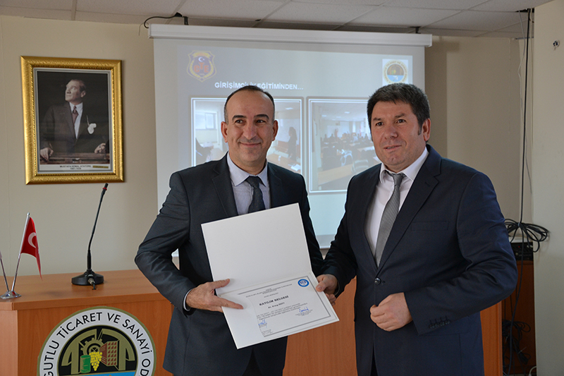 16 yükümlüye girişimcilik sertifikası MANİSA’nın Turgutlu İlçesi’nde Turgutlu Denetimli Serbestlik Müdürlüğü tarafından düzenlenen “Uygulamalı Girişimcilik Eğitim Sertifika” töreni Turgutlu Ticaret ve Sanayi Odası Meclis Salonu’nda yapıldı.Bugün saat 14.00 de yapılan Etkinliğe Turgutlu Kaymakamı Uğur Turan, Turgutlu Belediye Başkan Yardımcısı İskender Tunç, Turgutlu Cumhuriyet Başsavcısı Süleyman Selçuk Gökçe, Turgutlu Ağır Ceza Mahkemesi Başkanı Hasan Çay, TUTSO Yönetim Kurulu Başkanı Faruk Aydın, TUTSO Meclis Başkanı Yavuz Semizler, Ahmetli Meslek Okulu Müdürü Murat Şahin, Baro Temsilcisi,KOSGEB temsilcisi ve yükümlüler katıldı.Turgutlu Denetimli Serbestlik Müdürlüğü ile Kısa adı TUTSO olan Turgutlu ve Ticaret Odası işbirliğinde “Kendi İşini Kurmak İsteyen” Yükümlülere KOSGEB uygulamalı girişimcilik eğitimleri , şartları taşıyan 16 yükümlü ile sürecin koordinasyonunu sağlayan bir denetim Serbestlik Memuruna TUTSO Eğitim Salonu’nda 24 Ekim 2017 ile 27 Ekim2017 tarihlerinde verildi.Turgutlu Denetimli Serbestlik Müdürü Habil Kanoğlu “Girişimcilik Eğitimi ; bireylerin kendi işlerini kurmalarına ve geliştirmelerine yardımcı olmak amacıyla uygulanan bir program. Denetimli Serbestlik altında bulunan yükümlülerin topluma tekrar kazandırılması kapsamında yürütülen eğitim ve iyileştirme faaliyetleri; Kamu Kurum ve kuruluşları ile Üniversiteler ve sivil tolum kuruluşlarının işbirliği ve destekleri ile yürütülmekte.” İfadelerine yer verdi.TUNCEL YILMAZ