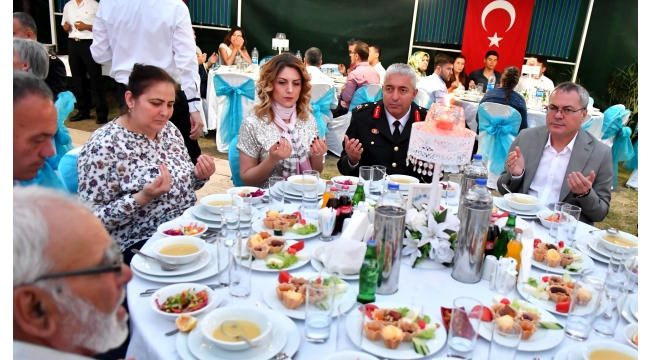 KOMUTAN CAN VE EŞİ TEK TEK İLGİLENDİİl Jandarma Komutanı J. Tuğ. General Erhan Can ve eşi Yeliz Can ile birlikte iftara katılan tüm şehit yakınları ve gazilerle yakından ilgilenerek iftar masalarına kadar eşlik etti.Jandarma Tugay Komutanlığının ev sahipliğindeki Şehit yakınları ve Gaziler ile ailelerinin yer aldığı iftar yemeğine Manisa Valisi Ahmet Deniz, Tugay Komutanı Büyükşehir Belediye Başkan vekili Mehmet Güzgülü, Komando Eğitim Tugay Komutanı Piyade Albay Güven Dere, Yunusemre kaymakamı Ahmet Erdoğdu, Şehzadeler Belediye Başkan vekili Atilla Efendioğlu, İl Müftüsü Sinan Cihan,Emniyet Müdürü Fevzi Bilgiç, J. Albay Seyfi Türkan, J. Albay Muhammet Sevinç Jandarma albay Mesut Kandemir, Manisa il genelindeki 17 ilçeden gelen şehit yakınları ile gaziler ve onların yakınları ile Jandarmanın ilçe komutanları katıldı.İLK SESLENİŞ KOMUTAN CAN’DANManisa İl Jandarma Komutanı J. Tuğ. General Erhan Can, iftar yemeği arasında yaptığı konuşmasında tüm şehit yakınları ve gazilerin çok kıymet verdiklerinin dile getirerek;