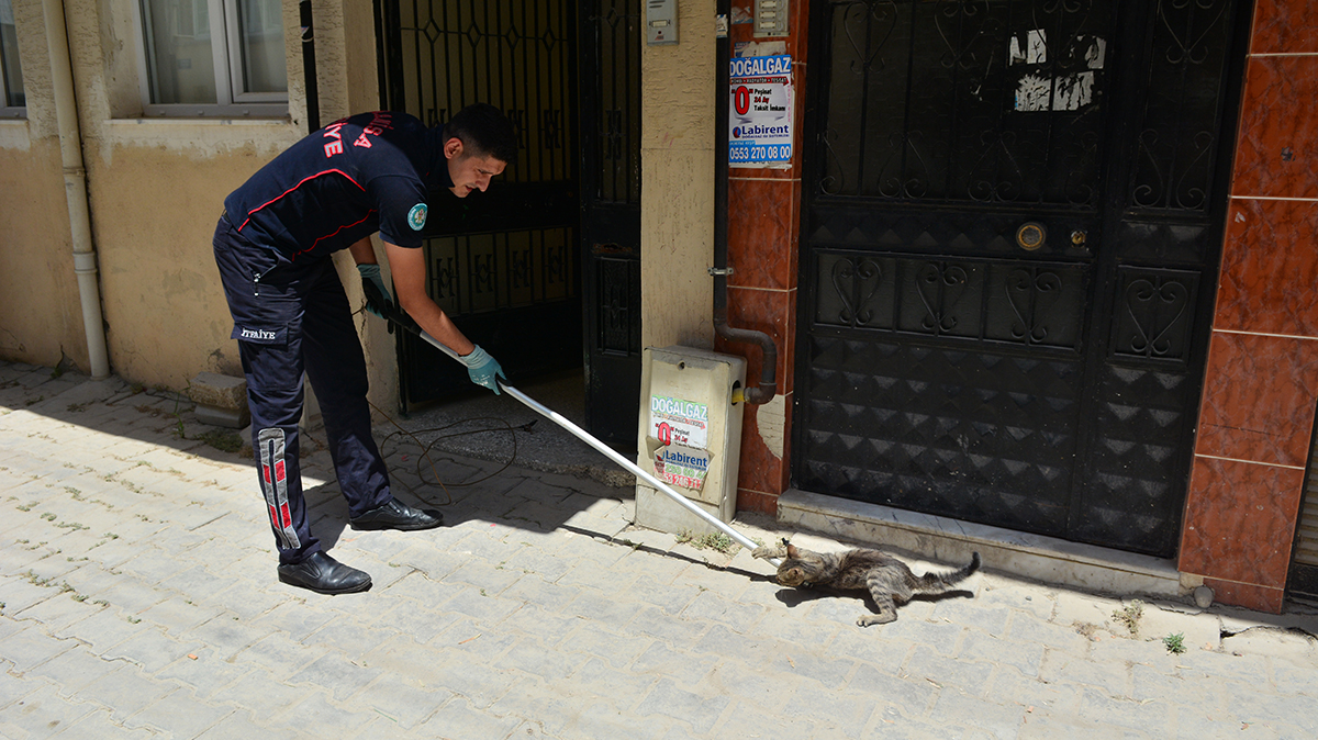 HAVALANDIRMA BOŞLUĞUNDA 2 GÜNDÜR MAHSUR KALAN KEDİYİ İTFAİYE KURTARDIMANİSA’nın Turgutlu İlçesi’nde bir apartmanın havalandırma deliğine düşen yavru kediyi itfaiye erleri kurtardı .Parmağı kedi tarafından ısırılan itfaiye eri hastaneye giderek tedavi oldu.Olay bu sabah saat 10.00 sıralarında Yılmazlar Mahallesi Dömeke sokak no 55 sayılı apartmanın zemin katında meydana geldi.ikamet eden Aynur Kırdı ( 65 ) isimli ev hanımı iki gündür havalandırma boşluğundan kedi miyavlaması duyması üzerine bu sabah itfaiye haber verdi.Olay yerine gelen Manisa Büyükşehir İtfaiyesi Turgutlu İtfaiye Amirliği ekipleri zemin kattaki yavru kediyi çıkarmak istedi. Ancak kediyi havalandırma boşluğundan bir üste kata sıçradı. Eldiven takarak kediyi yakalamak isteyen itfaiye eri Ali Şahin’nin parmağı kedi tarafından ısırıldı. Özel bir aparatla kedi yakalayan görevliler kediyi sokağa bıraktı.Aynur Kırdı : “ İki gündür havalandırma boşluğundan kedi sesi geliyordu. Bu sabah ses kesilince meraklandım. Acaba açlıktan öldü mü ?diye haber verdim. Görevliler kediyi kurtardı. Ama itfaiye erine de üzüldüm elini kedi ısırmış”Doğan ÇİZMECİ/TURGUTLU