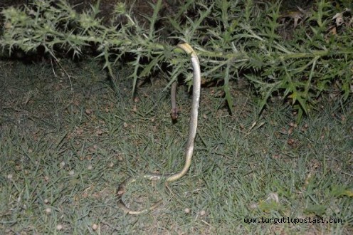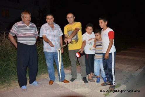 2 metrelik yılan mahalleliyi korkuttuMANİSA'nın Şehzadeler İlçesi Ahmet Bedevi Mahallesi'nde ortaya çıkan 2 metre uzunluğundaki yılan, mahalle sakinleri tarafından öldürüldü.Şehzadeler İlçesi'ne bağlı Ahmet Bedevi Mahallesi'nde görünen yaklaşık 2 metre uzunluğundaki yılan mahalle sakinlerini korkuttu. Vatandaşlar kendilerine zarar vermesinden endişe ettikleri yılanı öldürdü. Vatandaşlardan Nevzat Hasçelik, son günlerde hava sıcaklıklarının artmasına bağlı olarak yılanların da arttığını söyledi. Yetkililerden yardım istediklerini belirten Hasçelik, sokaklarda oynayan çocuklar için yılanların büyük tehlike saçtığını söyledi. Ahmet Bedevi Mahallesi Muhtarı Turan Şahin ise, "Çoluk çocuk hepimiz korkmaya başladık. Bayramı yılanlarla geçiriyoruz. Bu öldürdüğümüz üçüncü yılan. Buradan yetkililere sesleniyoruz. Mahallemizi yılanlardan kurtarın. Havalar ısındığı için yılanlar sokaklarda dolaşıyor" dedi. dha