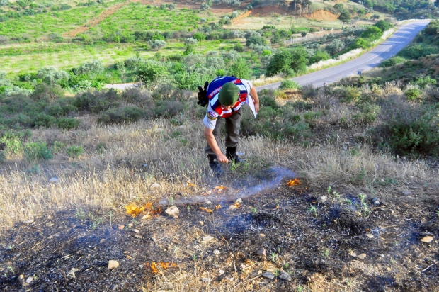 MANİSA 'nın Turgutlu İlçesi'nde makilik arazide yangın çıktı.Yangında yaklaşık 20 dönüm makilik alan kül oldu. Yangın bugün saat 18.00 sıralarında Turgutlu Kızılyokuş Mevkii’nde makilik alanda bilinmeyen bir nedenle yangın çıktı.Çevredekilerin duman ve alevleri görmesi üzerine yetkililere haber vermesi üzerine Manisa Büyükşehir Turgutlu İtfaiye araçları müdahel etti. Yanan yerin sarp arazi olması üzerine olay yerine Turgutlu Orman İşletmesine ait bir arazöz geldi. Yaklaşık 20 dönümlük alanda çıkan yangında makilik alan ile zeytin ağaçları ve 3 dönüm üzüm bağı zarar gördü.Bir saatlik çalışma ile yangın kontrol altına alındı. Turgutlu Jandarması olayle ilgili soruşturma başlattı.Doğan ÇİZMECİ/ TURGUTLU