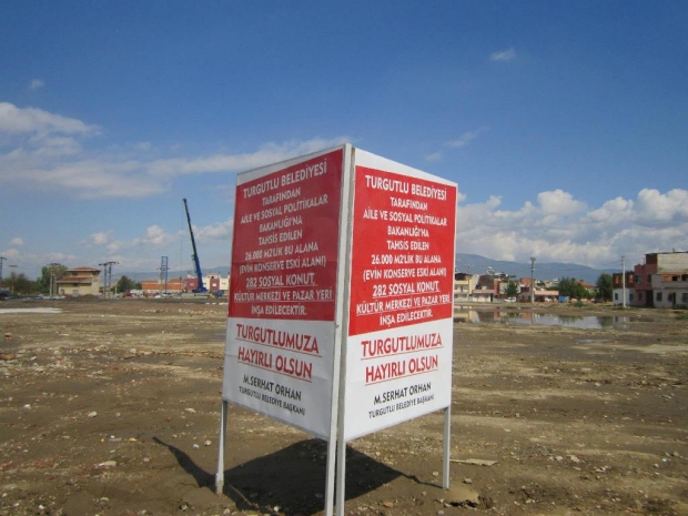 282 adet sosyal konut, pazar yeri ve kültür merkezi projesi hayata geçiyorTOKİ’ye devri gerçekleşen arsada TOKİ ekipleri inşaat çalışmaları için hazırlıklarına başladı MANİSA’nın Turgutlu İlçesi Özyurt Mahallesi’ndeki atıl Evin Konserve Fabrikası alanına yapılması planlanan 282 adet sosyal konut, pazar yeri ve kültür merkezi projesinin çalışmaları tüm hızıyla devam ediyor. TOKİ’ye devri gerçekleşen arsada TOKİ ekipleri inşaat çalışmaları için hazırlıklarına başladı. Turgutlu Belediye Başkanı Serhat Orhan, çalışma alanında yapılan hazırlıkları inceleyerek çalışmalarla ilgili bilgi aldı. Orhan , “Atıl bir durumda olan Evin Konserve Fabrikası alanının yerine böylesine önemli bir projeyi hayata geçirdiğimiz için son derece mutluyum. Hayata geçirilecek projemizle birlikte şehrimizde yaşayan ihtiyaç sahibi vatandaşlarımız burada ev sahibi olacak. Projelerimize bir yenisini daha eklemenin mutluluğuyla yeni sosyal projemizin Turgutlumuza hayırlı olmasını diliyorum” açıklamasında bulundu.ÖZEL