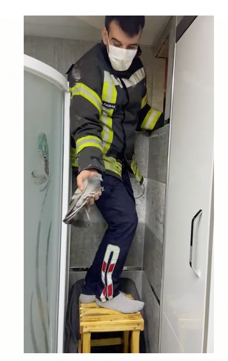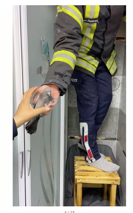Ev sahibi Onuralp Sertdöğücü: “Burada 3 gündür 2 kumru vardı. Biz ilkin yuva kurdular sanarak bir şey yapmadık. Kumrunun sesleri artınca biz kurtarmaya çalıştık ama başaralı olamadık. Bunun üzerine itfaiye çağırdık. Allah razı olsun, onlar 15 dakika içinde bir kumruyu çıkararak kurtardı. Diğer kumru kendi olanaklarıyla dışarıya çıktı. İtfaiyecilere teşekkür ediyoruz.” diye konuştu.