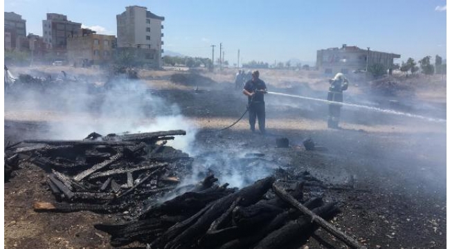 MANİSA'nın Turgutlu ilçesinde, çalılık arazide çıkan yangın, hayvan damlarına sıçradı. İtfaiye ekiplerince 1 saatlik çalışmayla söndürülen yangında, 3 hayvan damı zarar gördü. Mustafa Kemal Mahallesi Diyar Sokak'taki boş arazide, saat 12.30 sıralarında, henüz bilinmeyen nedenle yangın çıktı. Yangın rüzgarın da etkisiyle kısa sürede büyüyerek arazideki hayvan damlarına sıçradı. Alev ve dumanı fark eden mahalleli, hayvan damlarında bulunan 10 keçiyi kurtardı. İhbarı üzerine olay yerine gelen Manisa ve Turgutlu itfaiye ekipleri, su sıkarak alevlere müdahale etti. Söndürme çalışmalarına çevredekiler de destek verdi. Yaklaşık 1 saatlik çalışmayla söndürülen yangında, 3 hayvan damı ve çalılıklar küle döndü. Nurullah Çankaya