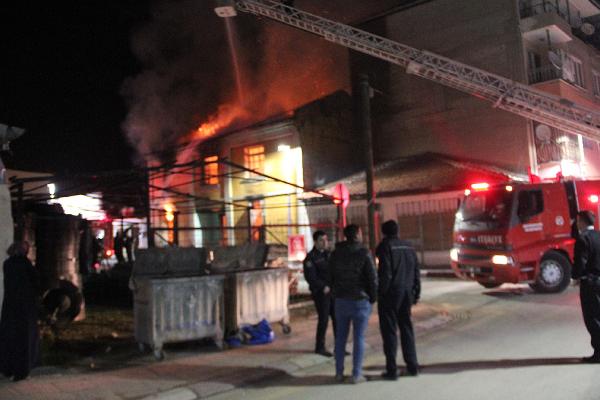 Sarıgöl'de 64 yıllık ev yandı- MANİSA'nın Sarıgöl ilçesinde, 64 yıllık iki katlı evde, henüz belirlenemeyen bir nedenle yangın çıktı. İtfaiyenin çalışması sonucu yangın söndürülürken, büyük çaplı hasar oluşan evin yıkılma tehlikesine karşı çevresinde önlem alındı.Sarıgöl'ün Konak Mahallesi Halit Çavuş Sokak'ta bulunan 64 yıllık kullanılmayan iki katlı evde, bugün saat 04.30'da, henüz belirlenemeyen bir nedenle yangın çıktı. Alevler içinde kalan evi gören vatandaşlar yangını itfaiye ve polise bildirdi. İhbar üzerine mahalleye gelerek çalışma başlatan itfaiye ekipleri, yangını söndürdü. Büyük çaplı hasar oluşan ve yıkılma tehlikesi bulunan evin çevresinde polis tarafından önlem alındı. Polis, yangınla ilgili soruşturma başlattı.Evin sahiplerinden İsmail Kara, "Evin hissesi benim, ablamın ve halamın üzerine. İnşaat yasağı var. Manisa Büyükşehir Belediyesi'nden izin alacaktım. Bu yapının özüne dokunmadan, dükkan yapacaktım. Hayalim suya düştü" dedi.DHA
