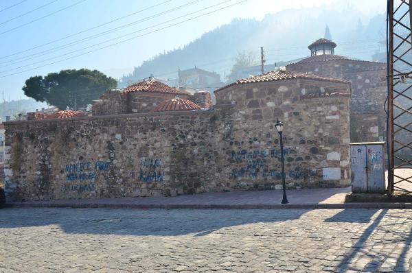 Manisa'da 7 asırlık tarihi yapıların hali üzdü- MANİSA'da 1 yıldan bu yana bakımsızlıktan çöplüğe dönen 7 asırlık tarihi darphane, tiner gibi madde bağımlılarının yuvası oldu. Saruhanlı Beyliği dönemine ait 628 yıllık tarihi Çukur Hamamı'nın duvarlarına yazılan yazılar ise halkın tepkisini çekti.Manisa Büyükşehir Belediyesi'nce yaklaşık 1 milyon TL'ye restore edilen 700 yıllık tarihi darphane ile Şehzadeler Belediyesi'nce restore edilen 628 yıllık Çukur Hamamı'na, kimliği belirsiz kişilerce zarar verildi. Saruhanoğlu Beyliği döneminde 1388 yılında yapılan ve kentin en eski hamamı olarak bilinen Çukur Hamamı'nın duvarlarına yazılan yazılar, eleştiri topladı. Şehzadeler Belediyesi tarafından çok amaçlı salonu ve taziye merkezi olarak kullanılması için restore edilen hamamın duvarlarına sprey boyalarla yazılan yazılar, tarihe saygısızlık olarak nitelendirildi. Mahalleli, tarihi yapının aslına uygun olarak korunmasını istedi. EVSİZLERİN YUVASI OLDUŞehzadeler İlçesi Ulucami bölgesindeki 7 asırlık darphanenin de kimliği belirsiz kişiler tarafından camı ve kapıları kırıldı. Yaklaşık 1 yıldan bu yana tarihi darphanenin durumunu yadırgayan mahalle sakinleri de, tinercilerin burayı mesken tuttuğunu söyledi. Tarihi yapının duvarlarına yazılar yazılırken, demir parmaklıkları aşıp içeri girildiğinde de manzara değişmedi. Binanın dışına zarar veren kişilerin, darphanenin içini de ev gibi kullandıkları ortaya çıktı. Evsizlerin mekanı haline gelen binanın tedirginlik yarattığı belirtildi. dha
