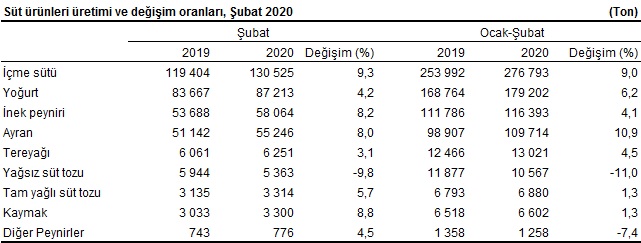 Türkiye İstatistik Kurumu (TÜİK) Ticari süt işletmelerince Şubat ayında 792 bin 223 ton inek sütü toplandığını açıkladı.