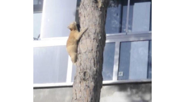 MANİSA'nın Turgutlu ilçesinde ağaçta mahsur kalan kedi, itfaiye ekiplerinin çalışması sırasında uzun süre hareketsiz kaldığı yerden kendi çabasıyla kurtuldu.Olay, saat 16.00 sıralarında Cumhuriyet Mahallesi Hanımeli Sokak 38 numaradaki apartmanda meydana geldi. Apartmanın bahçesinde bulunan çam ağacına tırmanan sokak kedisi, yaklaşık 12 metre yükseklikte mahsur kaldı. Apartman sakini Azime Akyol, itfaiyeyi arayıp durumu bildirdi. Uzun süre tutunduğu ağacın gövdesinde hareketsiz şekilde duran kedi için itfaiye ekibi kurtarma çalışması başlattı. İtfaiye eri merdivenli itfaiye aracıyla ağaca çıkarken, bu sırada kedi hızla ağaçtan inmeyi başardı. Herhangi bir sağlık sorunu gözlenmeyen kedi, koşarak gözden kayboldu.Doğan ÇİZMECİ