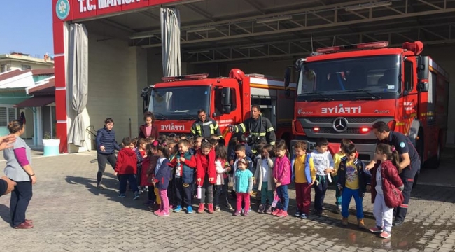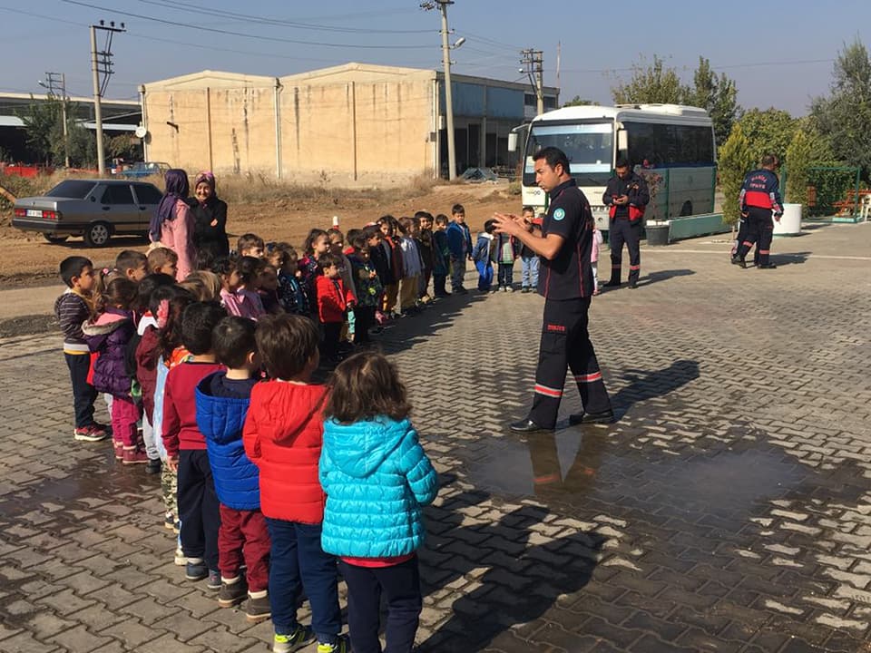 Manisa Büyükşehir Belediyesi İtfaiye Dairesi Başkanlığı Ahmetli Amirliği ekipleri, 45 anaokulu öğrencisi ile bir araya geldi. Bulundukları ortamda yangın olması durumunda neler yapılması gerektiğini öğrenen minik ateş savaşçıları, itfaiye araçlarına binmeyi de ihmal etmedi.İtfaiye Dairesi Başkanlığı Ahmetli Amirliği ekipleri, kullandıkları araç gereç ve teçhizatı tanıtmak ve olası yangın durumları karşısında yapılması gerekenleri öğretmek amacıyla Ahmetli Anaokulu öğrencileri ile bir araya geldi. 45 minik öğrencinin katıldığı programda, yangın anında yapılması gerekenler ve uzak durulması gereken durumlar anlatıldı. Dünya standartlarının 5 ila 7 dakika arasında değişen yangına müdahale hızını standartların altına inerek 3 ile 5 dakikaya düşüren Manisa Büyükşehir Belediyesi İtfaiye Dairesi Başkanlığı’nın verdiği eğitimleri alan öğrenciler, ekiplerin kullandığı araçların direksiyonuna geçmeyi de ihmal etmedi. Eğitim sonunda minik ateş savaşçılarına Manisa Büyükşehir Belediye Başkanı Cengiz Ergün’ün ikramları hediye edildi.