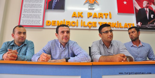 Ak Gençlik‘ten Demirci Teşkilatına Ziyaret10 Ağustosta yapılan Cumhurbaşkanlığı seçimlerinin ardından ilçe ziyaretlerine başlayan AK Gençlik teşkilatı, geçtiğimiz akşam Demirci ilçe gençlik kolları teşkilatını ziyaret etti.Demirci ilçe teşkilat binasında yapılan ziyarette Demirci ilçe gençlik kolları başkanı Rıza Erdem ve yönetim kurulu üyeleri hazır bulundu. Cumhurbaşkanlığı seçimlerinde Demirci ilçesinden alınan sonucun çok mutluluk verici olduğunu ifade eden AK Parti Manisa İl Gençlik Kolları Başkanı Halil Özkan “Öncelikle Cumhurbaşkanlığı seçimlerinde büyük gayretler gösteren, fedakârlıkla çalışan değerli arkadaşlarıma bir kez daha çok teşekkür ediyorum. AK Parti teşkilatları hepimizin bildiği gibi 2002’den beri tüm seçimlerden galip olarak ayrılmıştır. Buda teşkilatlarımızın ne kadar hazırlıklı olduğunu göstermektedir. Cumhurbaşkanlığı seçimlerini geride bıraktık ancak önümüzde 2015 milletvekilliği seçimleri var durmadan dinlenemeden 2015 seçimleri içinde çalışmalarımızı sürdürüyoruz. Diğer ilçelerimizi de ziyaret ederek arkadaşlarımız ile bir araya geleceğiz” dedi.Katılımın yoğun olduğu toplantıda söz alan Demirci ilçe gençlik kolları başkanı Rıza Erdem, çalışmalarına ara vermeden devam ettiklerini her gün vatandaşlarla bir araya gelmeye gayret gösterdiklerini ifade etti. Gençlik Kolları Başkanı Halil Özkan toplantının ardından Demirci Gençlik Kolları Yönetim Kurulu üyesi olan Rıdvan Söylenç’ in düğün merasimine katılarak Söylenç’i tebrik etti.HABER MERKEZİ