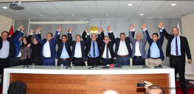 Konuşmaların ardından AK Parti'nin Manisa milletvekilleri el ele tutuşup havaya kaldırarak zafer pozu verdi.dha