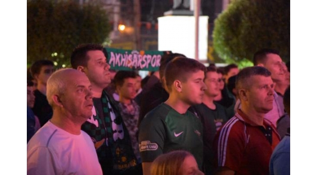 Ziraat Türkiye Kupası’nda üst üste ikinci kez finale çıkan Akhisarspor’da takımlarını Galatasaray’la Sivas’ta oynanan finalde destekleyemeyen binlerce taraftar ilçedeki Milli Egemenlik Meydanı’na akın etti. Akhisar Belediyesi, Sivas’a gidemeyen Akhisarlılar için meydana dev ekran kurdurdu. Taraftalar, tarihi finali meydanda büyük heyecanla izledi. Akhisar Belediye Başkanı Besim Dutlulu da maçı taraftarların arasında Milli Egemenlik Meydanı’nda takip etti. Spor Toto Süper Lig’de henüz 4 gün önce küme düşmenin üzüntüsünü yaşayan yeşil siyahlılar özellikle Elvis Manu’nun ikinci yarıda Akhisarspor’u öne geçiren golünün ardından büyük sevinç yaşadı. Golden sonra meydanda yüzlerce meşale yandı.DHA