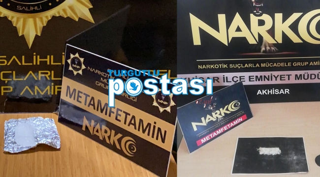 Manisa'nın Akhisar ve Salihli ilçelerinde polisin yaptığı operasyonda toplamda 82 gram Metamfetamin maddesi ele geçirildi. Zanlılar çıkarıldıkları mahkemece tutuklandı.Valilikten yapılan açıklamada şunlara yer verildi:""Akhisar Narkotik Suçlarla Mücadele Grup Amirliği ve İstihbarat Grup Amirliği görevlilerimizce uyuşturucu veya uyarıcı madde ticareti yapan, nakleden ve kullanan şahıslara yönelik yapılan çalışmalar kapsamında Akhisar ilçesinde durdurulan bir araçta yapılan aramada;
