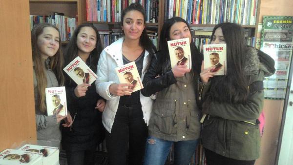 Akhisar'ın Paşa Mahallesi'nde sahafçılık yapan Aysel İnan kendi imkanları ile bastırdığı Nutuk'u ücretsiz dağıtıyor. İlkokul ve ortaokul öğrencileri için sadeleştirilen Rüştü Aydoğan'ın hazırladığı, Evrensel İletişim Yayınları'na ait Nutuk'a büyük bir ilgi olduğuna dikkat çeken İnan, "Ülkemizin içinde bulunduğu bu karanlık günlerde gençlerimizin, çocuklarımızın geleceklerine ışık tutabileceğine inandığımız bir proje yapmak istedik. Nutuk kitabını sadeleştirilmiş ve her yaşta insanın anlayabileceği bir dilde ücretsiz olarak dağıtma kararı aldık. 14 Şubat Sevgililer Günü'nde dağıtmaya başladık. Bu ülkenin geleceği bir damla ışık tutabiliyorsak ne mutlu bize" dedi. DHA