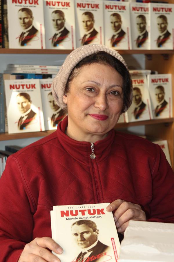 MANİSA'nın Akhisar ilçesinde yaşayan Aysel İnan, kendi imkanları ile bastırdığı Nutuk'u öğrenciler için ücretsiz dağıtıyor.