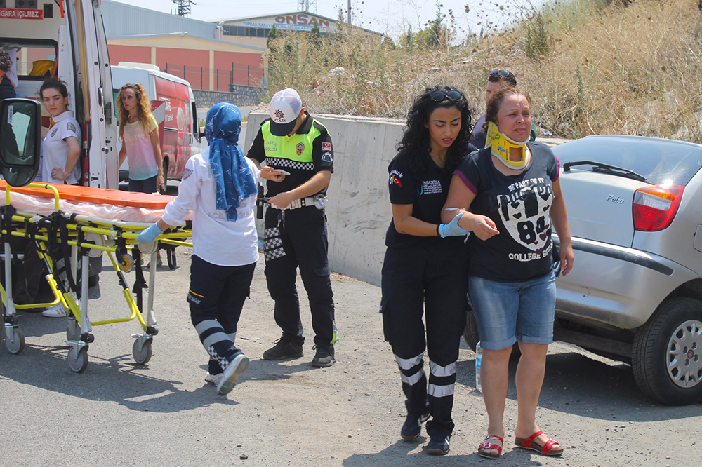 AKILLI KAVŞAK'DA KAZA 4 YARALIMANİSA'nın Turgutlu İlçesi’nde meydana gelen tek taraflı trafik kazasında 4 kişi yaralandı.Kaza bu gün saat 11.00 ‘de Turgutlu Manisa Akıllı Kavşağın ’ da meydana geldi .Manisa’dan Turgutlu'ya gelen Dilber K. (29) idaresindeki 35 AU ...0 plakalı otomobil kavşakta aşırı hız nedeniyle virajı alamayınca yol kenarında bulunan istinat duvarına çarptı. Kazayı görenlerin durumu bildirmesi üzerine gelen 112 Acil Sağlık ekipleriMüdahalenin ardından yaralıları sürücü Dilber K. (40) ve otomobilde yolcu olarak bulunan Hakan E.(49), Melek E. (47) ve Özlem G. (29) Turgutlu Devlet Hastanesi Acil Servine kaldırıldı. Yaralıların hayati tehlikesinin bulunmadığı öğrenildi .Polis kazayla ilgili soruşturma başlattı. Doğan ÇİZMECİ/TURGUTLU