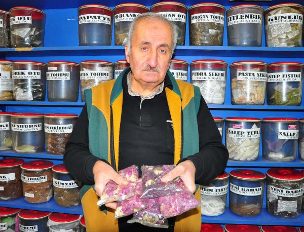 Manisa'da aktarlarda hatmi çiçeği bereketiMANİSA'da havaların soğumasıyla birlikte aktarlara uğrayan vatandaşlar, soğuk algınlığına ve kuru öksürüğe iyi geldiği bilinen hatmi çiçeğine yoğun ilgi gösteriyor. Manisa'daki aktarlar, havaların soğuduğu bu günlerde hatmi çiçeği bereketi yaşıyor. Soğuk algınlığına ve kuru öksürüğe iyi geldiği bilinen hatmi çiçeğine vatandaşlar, yoğun ilgi gösteriyor. Babadan kalma dükkanda 60 yıldır aktarlık yapan Halil Gürcan, günde en az 2 defa tüketilmesi halinde hatmi çiçeğinin grip, soğuk algınlığı ve öksürüğe karşı etkili olduğunu söyledi. Sattığı hatmi çiçeğini kendi bahçesinde ürettiğini belirten Gürcan, ilaçtan ziyade, destekleyici olarak sattıklarını söyledi. Özellikle kış aylarında küçük paketler halinde 2 TL'ye sattığı hatmi çiçeklerini vatandaşlara yetiştirmekte zorlandığını belirten Gürcan, ürünü kaynamış sütün içine atılmasının ardından tüketilmesinin hastalığa karşı daha etkili olacağını ifade etti. Gürcan, "Hatmi çiçeği soğuk algınlığına ve gribe karşı en etkili bitkilerden biridir. Dağlarda yol kenarlarında yetişen bir bitki fakat ben kendi bahçemde üretiyorum. Gribal enfeksiyonlarda, soğuk algınlığında ve kuru öksürükte boğazı yumuşatan özelliği vardır. Bu yüzden dolayı çok tercih edilmektedir. Normal sıcak suyun içine çay gibi demlenebiliyor. Bu çiçek soğuk algınlığının yanı sıra ağız içi yaralanmalarına, yumurtalık ve rahim kanserini önlemede, sıkışmış gazın atılmasını sağlıyor, vücuttaki iltihapları temizliyor, akne tedavisinde etkili, diş ve diş etlerine iyi geliyor. Söktürücü etkisiyle birçok hastalığa şifa olan hatmi çiçeği, kök, yaprak ve çiçekleriyle tam bir şifa deposu. Bitkinin yapısında sakaroz, yağ, aspargan, galaktoz, pektin ve nişasta bulunuyor" diye konuştu. dha