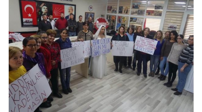 MANİSA'nın Alaşehir ilçesinde kadına yönelik şiddet CHP İlçe Kadın Kolları üyeleri tarafından düzenlenen basın açıklamasıyla, kınandı.CHP Alaşehir İlçe Kadın Kolları, 25 Kasım Kadına Yönelik Şiddete Karşı Mücadele Günü kapsamında parti lokalinde, 'kadına şiddeti' kınamak için basın açıklaması düzenledi. Etkinliğe Alaşehirliler de destek verdi. Kadınlar, üzerinde 'Kadına şiddet kader değildir', 'Kadına değil şiddete el kaldır' yazılı dövizler taşıdı. Kalabalık içinde gelinlik giymiş bir kadının 'Beni çocuk gelin mi görmek istersin' yazılı döviz tutması dikkat çekti. CHP Alaşehir İlçe Kadın Kolları Başkanı Ayşe Musal, "Geleceğimize ve hayatımıza sahip çıkmak için bir araya geldiğimiz ve şiddetsiz bir memleket hayal ettiğimiz 25 Kasım buluşması için buradayız. Kadınlar her gün şiddete, tacize ya da tecavüze uğruyor. Şiddet o kadar arttı ki artık medyada sıradan bir olay gibi algılanmaya başladı. 2018 yılında 10 çocuk öldürüldü. 50 kadına tecavüz edildi. 162 kadın tecavüze uğradı. 375 kadına zorla seks işçiliği yaptırıldı. 279 kız çocuğu cinsel istismara maruz kaldı. Bunlar sadece medyaya yansıyanla. Şiddete karşı kararlı duruşumuz, bu şiddet kültürünü değiştirme ve yok etme mücadelemiz devam edecek" dedi.DHA