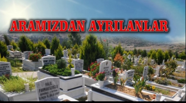 Zeynep OrtakavakTURGUTLU İlçesi sakinlerinden Zeynep Ortakavak yaşamını yitirdi. Cenazesi bugün Selvili Camii’nde Cuma vakti kılınacak cenaze namazı sonrası yeni kabristanlıkta toprağa verilecek . Oğulları , merhum Hakkı Cura, merhum Baki Cura,İsmail,Hüseyin,Metin ,Yunus Cura, torunu Hacı Ahmet ÖlücüZehra ŞirvanTURGUTLU İlçesi merhum Hüseyin Şirvan’ın eşi Zehra Şirvan hakkın rahmetine kavuştu.Cenazesi bugün Limoncu Camii’nde iki vakti kılınacak cenaze namazı sonrası yeni kabristanlıkta toprağa verilecek. Kızları ; Ayşe Yavuzgül,Ziynet Şirvan,Emine Şirvan,Feride Avcı, torunu Süleyman YavuzgülMehmet ÇavdarTURGUTLU İlçesi sakinlerinden Mehmet Çavdar vefat etti. Cenazesi bugün Hacıislar Mahallesi Camii’nde Cuma vakti kılınacak cenaze namazı ardından Hacıisalar Kabristanlığında toprağa verilecek. Oğlu İlyas Çavdar, damadı Salim Otman. Ölenlere Allah’tan rahmet, yakınlarına sabırlar dileriz .