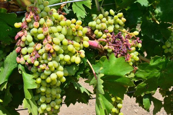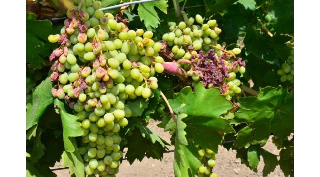 MANİSA'da hava sıcaklığının 44- 45 dereceye çıkması, üzüm bağlarında yanıklara neden oldu.