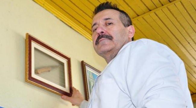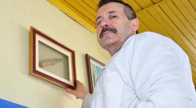 MANİSA'da hayvancılıkla uğraşan bir ailenin oğlu olan ve kasaplık yapan 50 yaşındaki Rıdvan Keçeci, kasap dayısının kendisine verdiği 100 yıllık bıçağı 12 yıldır cam çerçeve içerisinde dükkanında sergiliyor.