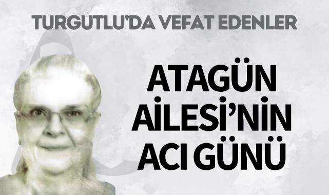 Atagün Ailesi’nin Acı GünüTURGUTLU İlçesi sakinlerinden hakkın Müberra Atagün (74) hakkın rahmetine kavuştu.Cenazesi bugün öğle namazına müteakip Dereköy Camii’nde kılınacak cenaze namazının ardından eski kabristanda toprağa verilecek.Yakınları: babası Mürteza Atagün, kardeşi Mualla AtagünMerhumeye Allah'tan rahmet, yakınlarına başsağlığı dileriz.