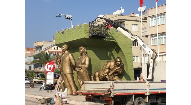 Atatürk Anıtı'na yenilemeManisa’nın Turgutlu İlçesinde 15 Temmuz Demokrasi Şehitleri Alanında bulunan Atatürk Anıtı bakıma alınarak restore ediliyor.Bu sabah 15 Temmuz Demokrasi Şehitleri Alanı'na gelen Turgutlu Belediyesi Park ve Bahçeler Müdürlüğü ekipleri, Atatürk Anıtı'nı yenilemeye başladı. Görevliler, yaklaşan 29 Ekim Cumhuriyet Bayramı vesilesiyle, anıtın 2 gün sürecek bir yenileme ve bakım çalışmasına alındığını, sıva, boya ve cila işlerinin devam ettiğini belirtti. Doğan ÇİZMECİ