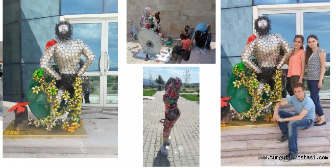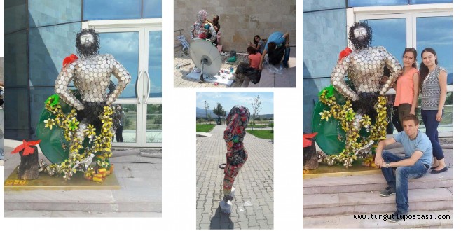 MANİSA Celal Bayar Üniversitesi (CBÜ) Birliktey Topluluğu öğrencileri doğa katliamına dikkat çekmek amacıyla metal içecek kutusu, atık gazeteler, tel parçaları, çanak anten ve tamamı doğadan toplanmış 2 bin 400 adet geri dönüşüm malzemesinden Türkiye'nin bilinen ilk çevrecisi Manisa Tarzanı Ahmet Bedevi'nin heykelini yaptı.