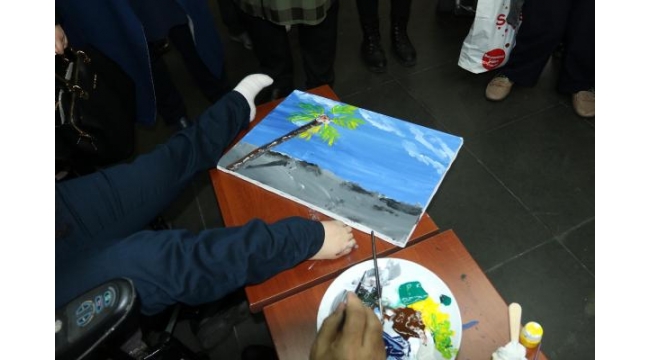 Ayaklarıyla resim yapan engelli Rabia, sergi açtıMANİSA'nın Akhisar ilçesinde yaşayan ve ayaklarıyla resim yapan engelli Rabia Asrak (19), '3 Aralık Dünya Engelliler Günü'nde kişisel resim sergisini açtı.Kol ve bacaklarından doğuştan engelli Rabia Asrak'ın ayaklarını kullanarak yaptığı 23 resim, Akhisar Belediyesi'nin desteğiyle Sanat Galerisi'nde, sanatseverlerin beğenisine sunuldu. Rabia Asrak'ın 'Benim Renkli Düşlerim' ismini verdiği kişisel serginin açılışını Akhisar Kaymakamı Sabit Kaya ve Akhisar Belediye Başkanı AK Parti'li Salih Hızlı yaptı. Resimle hayata bağlandığını vurgulayan Asrak, "Küçükken, arkadaşlarım oyuncaklarını elleriyle oynarken, ben ayaklarımla oynuyordum. Küçüklükten bu yana resme gizli bir ilgim vardı, duvarları boyuyordum. 8 yıl önce de sanat hayatım bir kuş resmi çizmemle başladı. O gün bugündür durmadan resim yapıyorum. Çeşitli eğitimler alarak da kendimi geliştirme şansı buldum. Resim, benim için çok şey ifade ediyor. Hayata bağlanma sebebim, diyebilirim. Hiçbir zaman resim yapmayı bırakmayacağım. Salih Hızlı Başkanı'mız da her zaman ilgisini esirgemedi. Kendisine sonsuz teşekkür ediyorum" dedi.Rabia Asrak, sergi salonunda ayaklarıyla yaptığı tabloyu tamamladıktan sonra Başkan Hızlı'ya hediye etti. Serginin hafta sonuna kadar sanatseverlerin ziyaretine açık olacağı belirtildi.