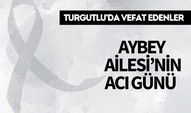 Aybey Ailesi’nin Acı GünüTURGUTLU İlçesi sakinlerinden Levent Aybey (65) hakkın rahmetine kavuştu. Cenazesi bugün ikindi namazına müteakip Pazar Camii’nde kılınacak cenaze namazının ardından eski kabristanda toprağa verilecek.Yakınları: kardeşi Bülent Aybey, oğlu Deniz Aybey, yeğenleri Mert Cömert, Mustafa AybeyMerhuma Allah'tan rahmet, yakınlarına başsağlığı dileriz.