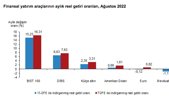 Finansal yatırım araçlarının aylık reel getiri oranları, Ağustos 2022