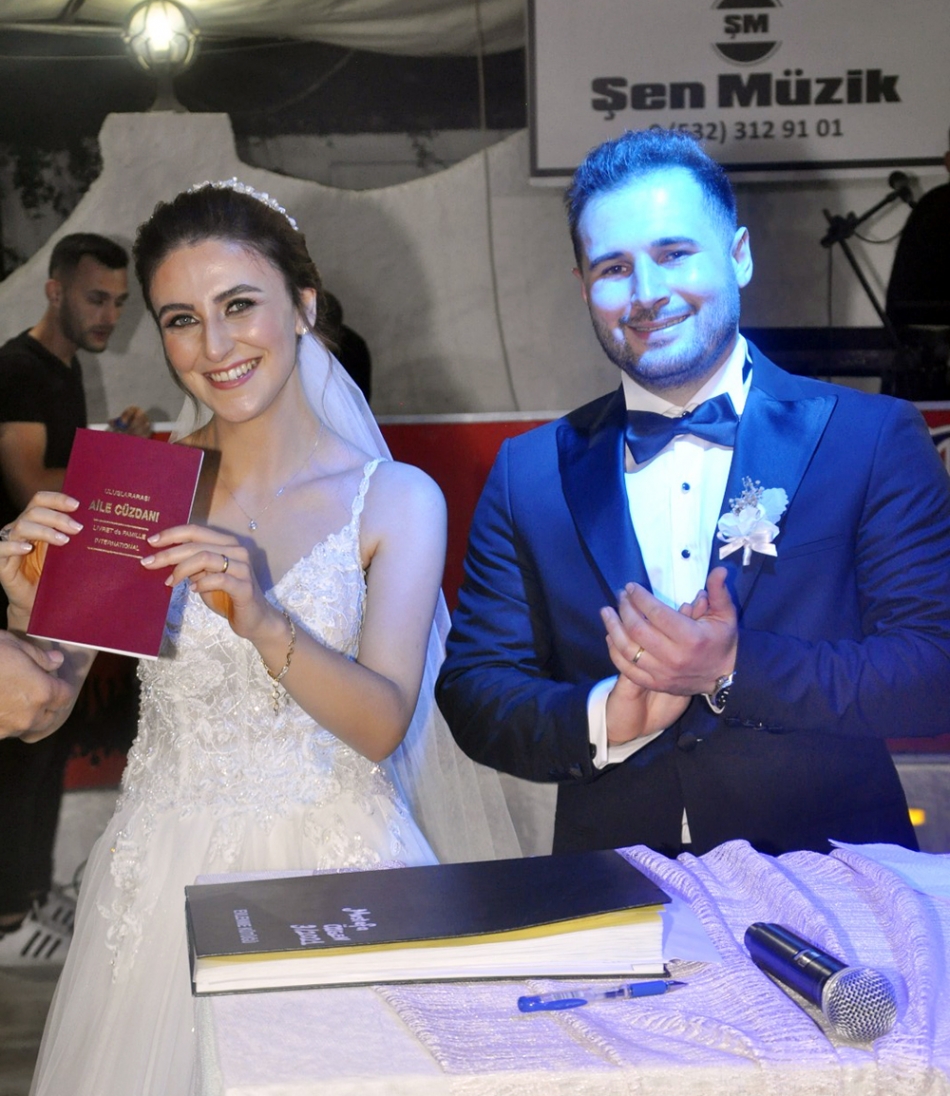 Ayperi ve Mehmet çiftinin düğün töreni Avşar’da bulunan Yakut Düğün Salonu’nda gerçekleştirildi. Düğün törenine Sofracı ve Baysan ailelerinin yakınları ve çiftin arkadaşları katıldı. Gelin ve damadın anne ve babaları konukları girişte karşıladı. Nikah töreninde bir ömür boyu mutluluğa evet diyen genç çiftin mutlulukları gözlerinden okundu. Şahitlikleri Nazım Balyapan, Atilla Pirçek ve Adnan Gürel Ankaralı yaptı. Kıyılan nikahın ardından tebrikleri kabul eden genç çift, gece boyunca kendilerini yalnız bırakmayan yakınları ve arkadaşlarıyla gönüllerince eğlendi. Sofracı ve Baysan aileleri, bu mutlu günlerine ortak olan davetlilere teşekkür etti. Yankı Gazetesi olarak Ayperi ve Mehmet çiftine ömür boyu mutluluklar dileriz. Nurullah ÇANKAYA