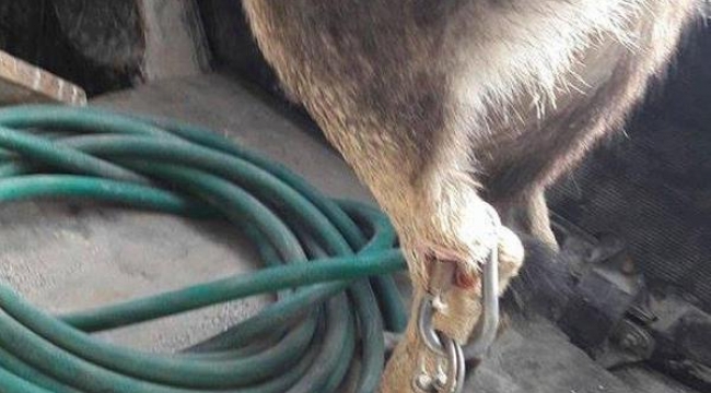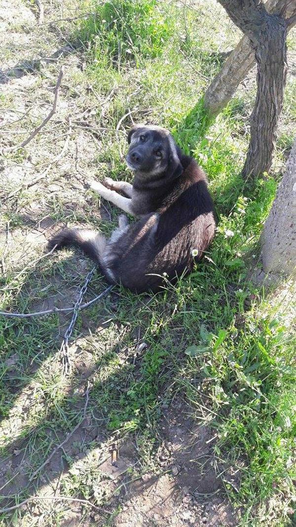 Saruhanlı'nın kırsal Mütevelli Mahallesi'nde, geçen 10 Mart'ta tarlada çalışan bir işçi, park halindeki traktörün altında sol arka bacağının derisi ve eti delinip, ucunda dağcı kancası bulunan zincirle bağlanmış, acı içinde kıvranan bir sokak köpeği olduğunu farketti. Köpeğin bacağındaki zincir, görenlerin yüreğini sızlatırken, durumla ilgili Saruhanlı Belediyesi'ne ihbarda bulunuldu. Saruhanlı Belediyesi Yerel Hayvan Koruma görevlisi de Manisa Hayvanları Koruma Derneği'ne durumu bildirdi. Köpek bulunduğu yerden alınarak tedaviye alındı.