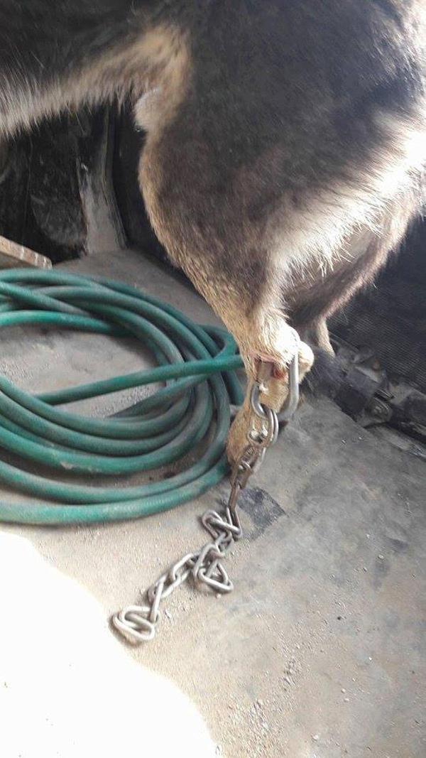Bacağına zincir geçirilen köpeğin içler acısı hali yürek sızlattı