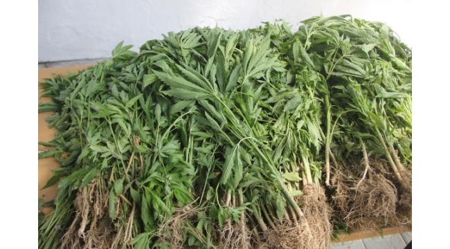 MANİSA'nın Sarıgöl ilçesinde, jandarmanın düzenlediği operasyonda bağ evindeki iki serada 590 kök Hint keneviri ve 45,70 gram kubar esrar ele geçirildi. Hint kenevirleri yakılarak imha edildi.İlçe Jandarma Komutanlığı ekipleri, kırsal Yukarıkoçaklar Mahallesi'nde yaşayan M.B.'nin (58) bağ evinde Hint keneviri yetiştirdiği ihbarıyla harekete geçti. Çalışma başlatan ekipler, saat 13.00 sıralarında Sarıgöl Sulh Ceza Hakimliği'nden alınan arama kararının ardından belirlenen adresteki M.B.'nin bağ evine operasyon düzenledi. Yapılan aramalarda bağ evindeki iki ayrı serada boyları 40 ile 50 santimetre arasında değişen 590 kök Hint keneviri ile 45, 70 gram kubar esrar ele geçirildi. Evde ise ruhsatsız biri kurusıkı 7.65 milimetre çapında 2 tabanca ve bu tabancalara ait toplam 140 mermi bulundu. M.B.'nin evde olmadığı belirlendi. Ele geçirilen Hint kenevirleri jandarma tarafından tek tek sökülüp, yakılarak imha edildi.DHA