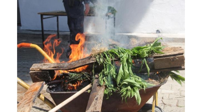 Bağ evindeki serada yetiştirilen Hint kenevirleri imha edildi