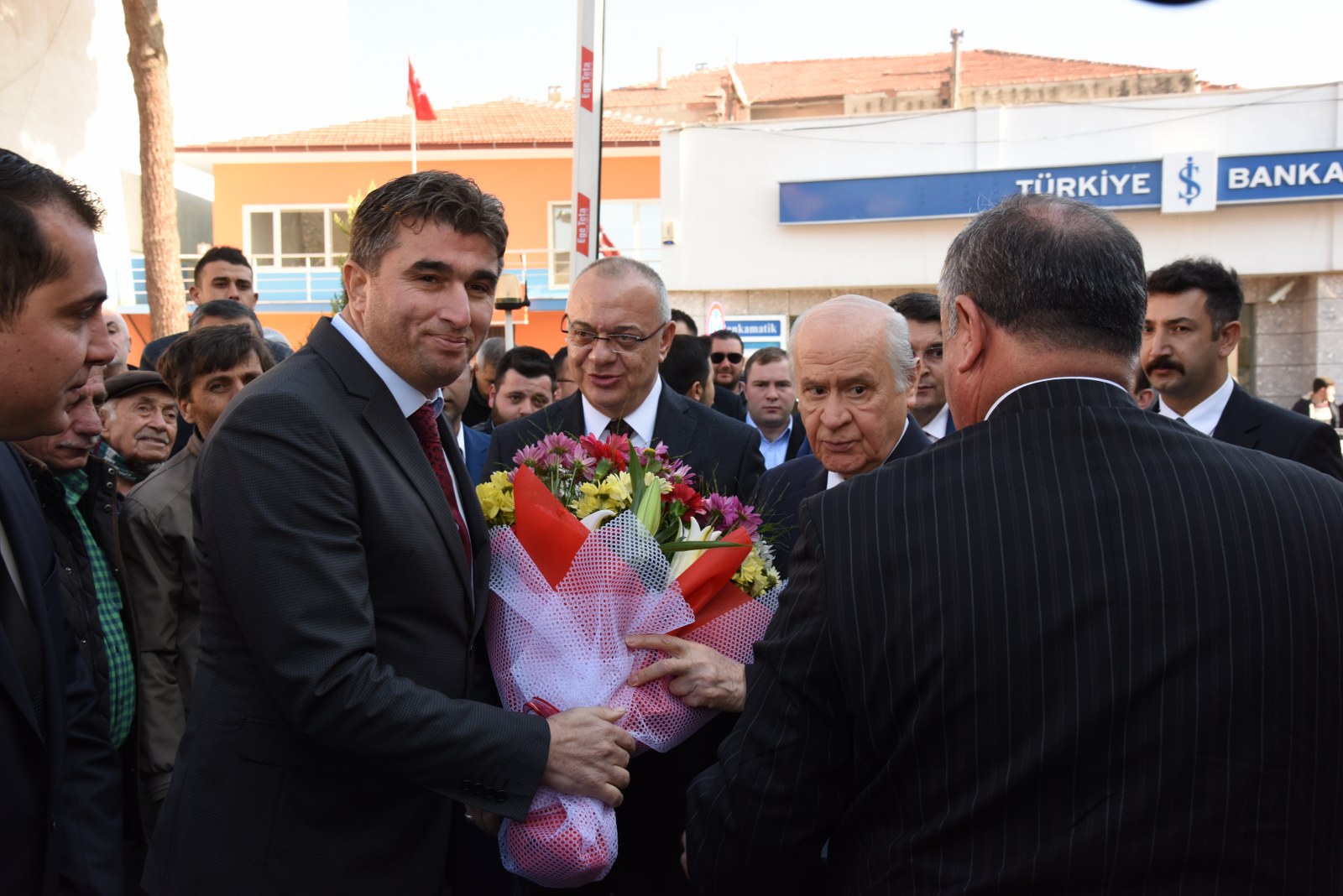 MANİSA Büyükşehir Belediyesi, MASKİ Genel Müdürlüğü, Salihli, Turgutlu, Alaşehir ve Selendi Belediyelerinin kazandırdığı hizmetlerin toplu açılış törenleri için Manisa’ya gelen MHP Genel Başkanı Devlet Bahçeli, Manisa Büyükşehir Belediye Başkanı Cengiz Ergün ile birlikte Selendi’deki toplu açılış töreninin ardından Kula ilçesinde çay molası verdi. Genel Başkan Bahçeli, Kula Belediye Başkanı Hüseyin Tosun tarafından çiçekle karşılandı.Bahçeli, Kulalı vatandaşlarla selamlaştıToplu açılış ve temel atma törenleri için Manisa’ya gelen MHP Genel Başkanı Devlet Bahçeli, Selendi ilçesindeki toplu açılış töreninin ardından Manisa Büyükşehir Belediye Başkanı Cengiz Ergün ile birlikte Kula ilçesinde çay molası verdi. Kula Belediye Başkanı Hüseyin Tosun ve parti teşkilatı tarafından çiçekle karşılanan Genel Başkan Bahçeli, Kulalı vatandaşlarla selamlaştı. Kısa süreli molada Kula Belediye Başkanı Hüseyin Tosun, Manisa Büyükşehir Belediyesi ile birlikte Kula’da yürütülen çalışmalar hakkında bilgi verdi. Tarihi Kula Evlerinin restorasyonu ile ilgili Manisa Büyükşehir Belediyesi ile birlikte önemli çalışmalar yaptıklarını anlatan Kula Belediye Başkanı Hüseyin Tosun, Genel Başkan Bahçeli’yi tekrar Manisa’da ağırlamaktan mutlu olduklarını ifade etti.