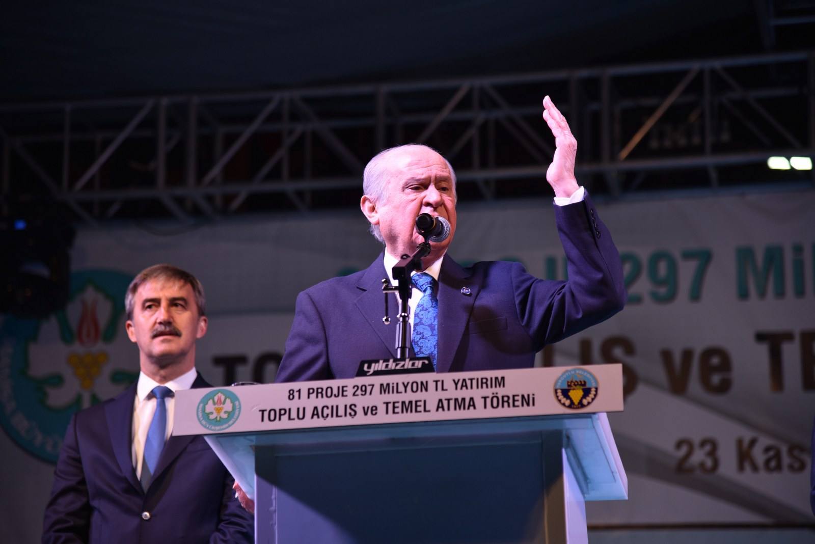 Manisa Büyükşehir Belediyesi, MASKİ Genel Müdürlüğü ve Turgutlu Belediyesinin ilçeye kazandırdığı yatırım ve hizmetlerin toplu açılış ve temel atma töreni, MHP Genel Başkanı Devlet Bahçeli’nin katılımlarıyla gerçekleşti. Toplam 297 milyon lirayı bulan 81 projenin kazandırıldığı törende konuşan Manisa Büyükşehir Belediye Başkanı Cengiz Ergün, “Sevdamız olan Turgutlu’muza ve Manisa’mıza hizmet etmeye devam edeceğiz” dedi. MHP Genel Başkanı Devlet Bahçeli, Manisa Büyükşehir Belediyesi, MASKİ Genel Müdürlüğü ve Turgutlu Belediyesinin ilçeye kazandırdığı yatırım ve hizmetlerin toplu açılışlarını gerçekleştirmek üzere Turgutlu’daydı. İlçeye girişiyle birlikte büyük bir coşkuyla karşılanan MHP Lideri, Manisa Büyükşehir Belediye Başkanı Cengiz Ergün ile birlikte Turgutlu Belediyesini ziyaret etti. Turgutlu Belediye Başkanı Turgay Şirin ve Turgutlulular tarafından karşılanan Bahçeli, belediye binasında ağırlandı. Burada Turgutlu Belediyesinin çalışmaları hakkında bilgi veren Belediye Başkanı Turgay Şirin, Bahçeli’ye hediye takdiminde bulundu. Açılış alanında ise, ünlü sanatçı Ahmet Şafak, Turgutlulular için birbirinden güzel şarkılarını seslendirdi.Yoğun KatılımTurgutlu Belediyesi ziyaretinin ardından açılışların yapılacağı Demokrasi Şehitleri Meydanı’na geçildi. Törene MHP Genel Başkanı Devlet Bahçeli ve Manisa Büyükşehir Belediye Başkanı Cengiz Ergün’ün yanı sıra MHP Genel Sekreteri İsmet Büyükataman, Genel Başkan Yardımcıları Şefkat Çetin, Oktay Öztürk, Sadir Durmaz, Manisa Milletvekili ve MHP Grup Başkanvekili Erkan Akçay, Ülkü Ocakları Genel Başkanı Olcay Kılavuz, MHP Kadın Kolları Genel Koordinatörü Nevin Taşlıçay, MHP İl Başkanı Erkan Öztürk, MHP’li milletvekilleri, ilçe kaymakamları, Alaşehir, Salihli, Selendi, Turgutlu, Sarıgöl, Kula belediye başkanları, Büyükşehir ve Alaşehir Belediyesi meclis üyeleri, Büyükşehir Belediyesi Genel Sekreteri Aytaç Yalçınkaya, MASKİ Genel Müdürü Yaşar Coşkun, Genel Sekreter Yardımcıları, MASKİ Genel Müdür Yardımcıları, Büyükşehir ve MASKİ daire başkanları, Alaşehir ilçe protokolü, sivil toplum kuruluşu temsilcileri, siyasi parti temsilcileri, mahalle muhtarları ve çok sayıda vatandaş katıldı.“Bu gurur Turgutlu’nun”Saygı duruşu ve İstiklal Marşı’nın okunmasının ardından törenin açılış konuşmasını Turgutlu Belediye Başkanı Turgay Şirin yaptı. Turgutlu adına onur ve gurur verici bir gün yaşadıklarını ifade eden Başkan Şirin, “Turgutlu tarihinin en büyük yatırımlarının açılış ve temel atmalarını gerçekleştiriyoruz. Bugün Milliyetçi Hareket Parti’li belediyelerin farkını Selendi’de, Alaşehir’de Salihli’de gördük. Şimdi de Turgutlu’da şahitlik ediyoruz. Yaptığımız hizmetlerin açılışlarını yapıyor ve temelini atıyor olmanın haklı gururuyla karşınızdayız. Aldığımız bu kutsal emanete ihanet etmeden hiç durmadan çalıştık. Bugün tüm bu gayretin sayesinde bu güzel tabloyu yaşıyoruz. Bu gurur Turgutlularındır. Göreve geldiğimiz günden bu yana Milliyetçi Hareket Parti’li üretken bir belediyecilik anlayışıyla hareket ettik. Allah rızası gözeterek çalıştık. Tüm zorluklara rağmen elimizi değil, gövdemizi taşın altına koyarak, Turgutlu’muza hizmet verdik. Şikayet etmeden, bahane üretmeden birçok başarılı çalışmayı hayata geçirdik” dedi.“Yaptıklarımız yapacaklarımızın teminatı”Şirin’in ardından Manisa Büyükşehir Belediye Başkanı Cengiz Ergün kürsüye davet edildi. Turgutlu’ya Manisa Büyükşehir Belediyesi başta olmak üzere, MASKİ Genel Müdürlüğü ve Turgutlu Belediyesinin kazandırdığı proje ve yatırımların açılışları için bir arada olduklarını anlatan Başkan Ergün, “Manisa’mızın büyükşehir olmasıyla birlikte zorlu geçiş sürecini tamamlar tamamlamaz ilimiz genelinde yoğun ve hummalı bir çalışma içine girdik. Turgutlu’muza da sözümüz vardı. Yaşayan, nefes alan, sorunsuz bir Turgutlu için çalışacağız demiştik. Bizlere güvendiniz ve bu makamlara getirdiniz. Biz de bu bilinçle hareket ederek sizlerin mutluluğu ve huzuru için projeler ürettik. Günü kurtaran değil, kalıcı çalışmaların içinde olduk. Altyapısından üstyapısına kadar A’dan Z’ye birçok hizmeti çok şükür Turgutlu’muza kazandırdık. İhtiyaç sahibi vatandaşlarımız için Gıda Bankası, çocuklarımız için Çocuk Kültür ve Sanat Merkezleri, gençlerimiz için Gençlik Merkezi ve MABEM, köprüsü olmayan köylerimize köprü, parke taşı ve altyapısı bulunmayan mahallelerimize gerekli hizmetleri getirdik. İlçemize güzel bir pazaryeri ve otopark kazandırdık. Geldiğimiz noktada Turgutlu, sürekli değişti, gelişti ve bu değişim fazlasıyla devam ediyor. Kıymetli Belediye Başkanı arkadaşım, sevgili dostum Turgay Şirin ile birlikte verdiğimiz sözleri birer birer yerine getiriyor olmanın mutluluğu ve huzuruyla alnımız ak bir şekilde karşınızdayız. Yapılanlar ortada. Yaptıklarımız yapacaklarımızın teminatıdır. Konuşulanlara bakmadan işimizi yapmaya, sevdamız olan Turgutlu’muza ve Manisa’mıza hizmet etmeye devam edeceğiz Allah’ın izniyle” diye konuştu.81 Proje, 297 Milyon YatırımTurgutlu’ya kazandırılan çalışmalarla ilgili bilgi de veren Başkan Ergün, “Turgutlu’muz, bugün toplu açılış ve temel atma töreni yaptığımız 4’üncü ilçemiz. Yaptığımız yatırımlarla rekor 297 milyon lira yatırım ve 81 projeyle Turgutlu’da. Avşar, Akçapınar, İzzettin Mahallelerinde düğün salonları yaptık. 13 milyon 800 bin lira civarında çok amaçlı kapalı otopark ve pazaryeri yaptık. Pazaryerinin bakımını da biz üstleniyoruz. Eski beled