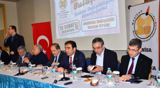 MİLLİ Savunma Bakan Yardımcısı Şuay Alpay, ülkedeki sistemin gerçek anlamda bir parlamenter sistem olmadığını belirterek, "Türkiye bunları yaşadı ve 67 yıldır parlamenter sistemden anasından emdiği süt burnundan geliyor. Bunu hepimiz yaşadık" dedi.Anayasa Değişikliği Tanıtım Grubu, Manisa'da, sivil toplum kuruluşlarına sistem değişikliğini anlattı. Manisa Sivil Dayanışma Platformu (MASİDAP) tarafından Saruhan Otel'de düzenlenen toplantıya; Milli Savunma Bakanı Yardımcısı Şuay Alpay, Cumhurbaşkanlığı Başdanışmanı Mehmet Uçum, Akdeniz Üniversitesi Öğretim Görevlisi Prof. Dr. Muharrem Kılıç, Platform Temsilcisi Mustafa Dağcı, Platform Yönetim Kurulu Üyesi Mehmet Şahin, MASİDAP Manisa Temsilcisi Mesut Öner ve Manisa'da sivil toplum kuruluşlarının temsilcileri katıldı.'DAKTİLO İLE MAİL ATMAYA ÇALIŞIYORUZ'Toplantıda konuşan Cumhurbaşkanlığı Başdanışmanı Mehmet Uçum, anayasa değişikliğinin bütün değişikliklerden daha önemli olduğunu belirtip, "Yaklaşık 200 yıldır sürekli bir yönetim arayışı içerisinde olduk. Geldiğimiz noktada ilk kez nasıl bir siyasal sistemde yaşamak istediği halka sorulacak. Anayasa değişikliğine bakarken, mevcut tecrübeden uzaklaşarak bakmamız lazım. Alıştığımız cumhurbaşkanı konumuyla bu değişikliğe bakarsak anlayamayız. Önerilen sistemde cumhurbaşkanının hükümet olma fonksiyonu öndedir" diye konuştu. Anayasa değişikliğinin zamanlamasının sorulduğunu dile getiren Uçum, kapalı devlet yapısının ortaya çıkardığı sorunlar olduğunu söyleyerek, "Devleti halka kapatırsanız, başkalarına açarsınız. O yapılar da kadrocu, illegal yapılardır. Bu kapalı devlet yapısının özelliğini bilen FETÖ çetesi, kadrolaşma yoluyla işgal hareketine girişmiştir. Böyle kapalı devlet yapıları ile demokrasiyi tam olarak koruyamazsınız. Dünya yeniden yapılanıyor. 21'inci yüzyılda dünya tekrar kuruluyor. Dünyanın yeniden kuruluş sürecinde rol oynamak zorundayız. Bu rolü oynamak için güçlü devlet yapısına ihtiyaç var. Adeta daktilo ile mail atmaya çalışıyoruz. Daktilo ile mail atılmaz. 1960 model araba ile yarış yapamazsınız. Biz eski model aygıtı 21'inci yüzyıla uygun hale getirmeliyiz" diye konuştu.Cumhurbaşkanlığı Başdanışmanı Mehmet Uçum ise, değişikliğin dışında kalan kişilerin yok olacağını söyleyip, "Siyasette olgunlaşan değişikliklerin taşıyıcılığını yapan siyasi aktörler, gelecekte söz sahibi olur. Değişikliklerin karşısında duranlar ise siyaset sahnesinden yok olur, giderler. Yok olanların yerine de yeni siyasi aktörler çıkar" dedi. Uçum'un ardından Prof. Dr. Muharrem Kılıç konuşup, STK temsilcilerine yeni sistemin faydalarını anlattı.Anayasa Tanıtım Grubu'nda yer alan Milli Savunma Bakan Yardımcısı Şuay Alpay ise bugüne kadar 65 hükümet kurulduğunu belirtip, tarihten örnekler vererek şunları söyledi:"Türkiye'deki sistem, gerçek manada bir parlamenter sistem değildir. 1923'ten 2017 yılına kadar hükümet sayısı 65'tir. Elde ne var; azınlık hükümetleri, koalisyon hükümetleri. Türkiye bunları yaşadı ve 67 yıldır parlamenter sistemden anasından, ne bileyim yani anasından emdiği süt burnundan geliyor. Bunu hepimiz yaşadık."Konuşmaların ardından STK temsilcilerinin soruları cevaplandı.DHA