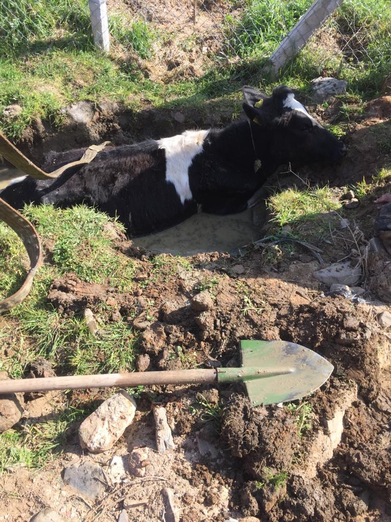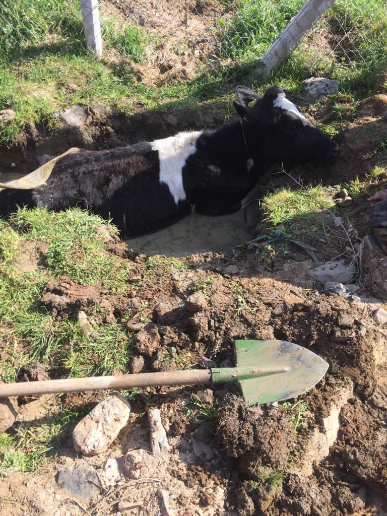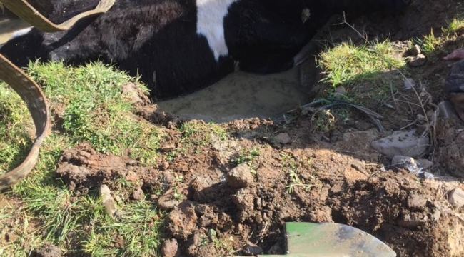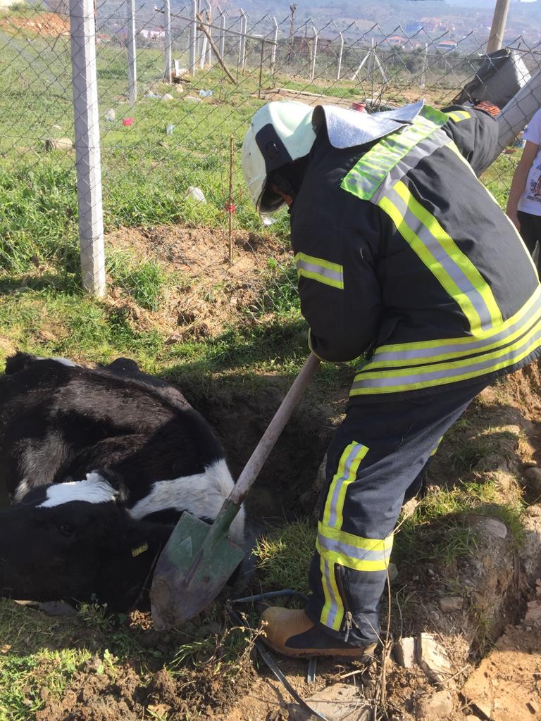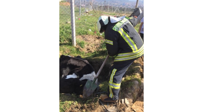 Balçığa saplanan inek, itfaiye ekiplerince kurtarıldı.