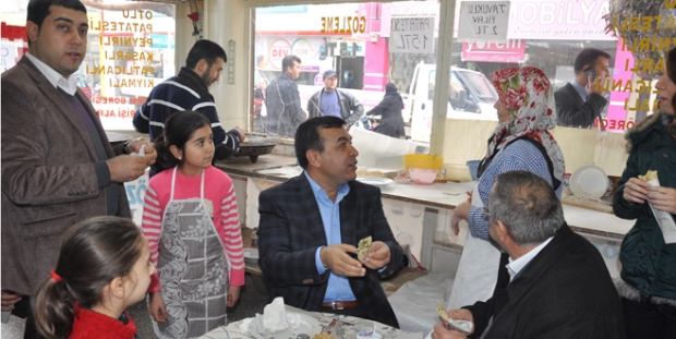 Turgutlu Belediye Başkanı ve AK Parti Turgutlu Belediye Başkan adayı Serhat Orhan seçim çalışamları kapsamında bugün de Cumhuriyet Mahallesi 7 Eylül Caddesi üzerinde ki esnafları ziyaret etti.Beraberindekilerle birlikte bir pideciyi ziyaret eden Orhan burada fırının başına geçrek pideyi fırına attı.Yedieylül caddesi üzerinde bir anahtarcı dükkanını ziyaret eden Orhana vatandaşlar:”Nereye oy vereceksin diye sorma oyumuzda belli yerimizde belli”şeklinde destek gösterdi.Çalışmalarına aralıksız devam eden Orhan’a dün olduğu gibi bugünde esnaflar kadar bayanların da yoğun ilgilisi dikkatlerden kaçmadı.Pekçok bayan vatandaş Orhanla birlikte fotoğraf çekildi.