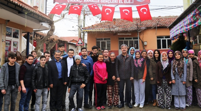 Başkan Şirin, “Aziz Şehitlerimiz’in ruhu şad, mekanları cennet olsun Çıkrıkçı’da Birlik ve Beraberlik Günü Yaşandı TURGUTLU Belediye Başkanı Turgay Şirin, Çıkrıkçı Mahallesi gençlerinin Şehitlerimiz adına düzenlediği lokma hayrına katıldı. Mahalle sakinlerinin yoğun ilgisiyle karşılanan Başkan Şirin, milli ve manevi değerlere sahip çıkan Çıkrıkçılı gençleri kutlarken, mahalle sakinlerinden İbrahim Memiş’in merhume eşi adına düzenlenen mevlid-i şerifine de iştirak etti. Turgutlu Belediye Başkanı Turgay Şirin, hafta sonu programı içerisinde Çıkrıkçı Mahallesi’ne çıkarma yaptı. Başkan Şirin ilk olarak ‘Gün birlik günüdür’ diyen gençlerin şehitlerimiz için düzenlediği lokma hayrı ve mevlid-i şerife katıldı. İnsan Kaynakları ve Eğitim Müdürü Mümin Yürek ve nikah memuru Ali Akça’nın da eşlik ettiği lokma hayrında, Şehit Piyade Çavuş Tolga Artuğ’un babası Ercan Artuğ, Şehit Uzman Çavuş Ali Şahin’in kardeşleri, Türkiye Muharip Harp Malulü Gaziler, Şehit Dul ve Yetimleri Derneği Turgutlu Şubesi adına Ahmet İlter ile şube üyeleri de yer aldı. Lokma hayrının Allah katında kabulünü dileyen Başkan Şirin, milli ve manevi değerlere sahip çıkan Çıkrıkçı gençlerini kutladı. Başkan Şirin, “Aziz Şehitlerimiz’in ruhu şad, mekanları cennet olsun. Arkalarında Çıkrıkçılı gibi bayrağı devralan nice gençlerimiz var. Allah hayırlarını kabul etsin, hepsine sağlık, huzur ve mutluluk versin” dedi. Davetlerine katılan Başkan Şirin’e teşekkür eden gençler de bol bol hatıra fotoğrafları çektirerek günü ölümsüzleştirdi.Mahalleli Kadınlardan Başkan’a Teşekkür Çıkrıkçı Mahallesi halkıyla sohbet eden Başkan Şirin, ev davetlerini kırmayarak mahalle sakini kadınları ziyaret etti. Başkan Şirin’in ziyaretinden memnuniyet duyan kadınlar, Turgutlu Belediyesi’nin çalışmaları hakkında kendisinden bilgi aldı. Kendilerini ağırlayan hemşerilerine teşekkür ederek başta Çıkrıkçı olmak üzere ilçe genelinde gerçekleştirdikleri hizmetlerden söz eden Başkan Şirin, “Yakın zamanda hem girişteki menfezi genişletmiş hem de düğün salonunun bahçe düzenlemesini tamamlamıştık. Şimdi de Manisa Büyükşehir Belediyemiz’ in desteği ile civar mahallelere ulaşımı sağlayan köprüyü yenileyeceğiz. İnşallah sizlerin evi olan mahallemizde hiçbir sorun kalmayacak” dedi. Başkan Şirin mahalle ziyaretinde İbrahim Memiş’e taziye ziyaretinde bulunarak, merhume eşi Abide Memiş'e rahmet, acılı ailesine başsağlığı diledi. NURULLAH ÇANKAYA