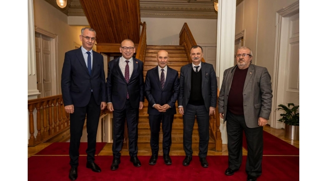 TURGUTLU Belediye Başkanı Çetin Akın, İzmir Büyükşehir Belediye Başkanı Tunç Soyer’i beraberindeki heyet ile birlikte makamında ziyaret etti. İki başkan Gediz Havzası’nın korunması amacıyla yürüttükleri çalışmalar hakkında bilgi verdiler, çözüm yollarını konuştular. Başkanlar ayrıca Turgutlu Belediyesinin ve İzmir Büyükşehir Belediyesinin birlikte yapılabileceği ortak projeler ve iş birlikleri hakkında fikir alışverişinde bulundular.Gediz için ortak akılBaşkan Çetin Akın ve Başkan Tunç Soyer görüşme sırasında Türkiye’nin uluslararası öneme sahip sulak alanlardan birisi olan Gediz Havzası’nın korunması sürecinde İzmir Büyükşehir Belediyesi ve Turgutlu Belediyesinin ortak akıl ile hareket etmesine mutabık kaldı. Başkan Çetin Akın’a ziyaretleri sırasında CHP İl Başkanı Semih Balaban, İl Yönetim Kurulu Üyesi Ali Kuyumcu ve Turgutlu Belediyesi Özel Kalem Müdürü Ali Nasuhoğlu eşlik etti. Gediz Havzası’nı temizlemek, kirletilmesini engellemek ve korumak için ne gerekiyorsa yapacaklarının altını çizen Başkan Çetin Akın,”Bugün İzmir Büyükşehir Belediye Başkanımız Tunç Soyer ile çok önemli bir görüşme gerçekleştirdik. Bölgemizin en önemli ve en verimli sulak alanı Gediz’in korunması başta olmak üzere çevremizin ve vatandaşımızın sağlığı için İzmir Büyükşehir Belediye Başkanımız Tunç Soyer ile ortak akılla çalışmaya, güzel bir işbirliği sağlamaya karar verdik. Son derece değerli bir doğal alanın korunması adına büyük bir adım attık. Doğru politikalar izleyerek can damarımız Gediz’i eski haline kavuşturacağız. Bizleri ilgiyle karşılayan Belediye Başkanımız Tunç Soyer’e misafirperverliği ve hoş sohbeti için teşekkür ederim.” dedi.