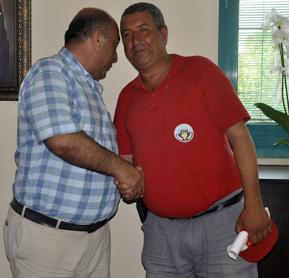 Belediye işçisinden insanlık ölmemiş dedirten davranışTURGUTLU Belediyesi Park ve Bahçeler Müdürlüğü çalışanı Durmuş Uğur, görevi esnasında parkta bulduğu, yüklü miktarda para, çekler, kredi ve bankamatik kartlarıyla dolu 1 milyon 502 bin 172 TL değerindeki çantayı bularak Zabıta’ya getirdi. Belediye yetkilileri, bir akaryakıt istasyonuna ait olduğu anlaşılan çantayı, sahibi Masum Örge’yi belediyeye çağırarak teslim etti. Çantayı teslim alan Örge, belediye işçisine teşekkür etti. Örge, teşekkür mahiyetinde bir miktar para vermek istedi ancak örnek davranış sergileyen Uğur, ‘Görevimi yaptım’ diyerek parayı kabul etmedi.Olay, Çarşamba günü Ergenekon Mahallesi Osman Gazi Parkı’nda yaşandı. Ailesiyle parkta oturarak biraderlerini bekleyen akaryakıt istasyonu sahibi Masum Örge, İzmir’de bir yakınlarının cenazesine gitmek için kendilerini almaya gelen araca binerek çantayı bankta unuttu. Turgutlu Belediye Park ve Bahçeler Müdürlüğünde görevli Durmuş Uğur, parkta sulama yaparken bir çanta gördü. Çantanın başında 2 saat bekleyen belediye işçisi Uğur, kimse gelmeyince çantayı zabıta ekiplerine teslim etti. Zabıta ekipleri çantanın sahibini belirleyerek çantanın teslimi için belediyeye davet etti. İçinde 170 bin 845 TL, 5 bin 585 TL değerinde 1001 dolar, 9 bin 33 TL değerinde 1450 Euro, 1.316.709.88 TL değerinde çek, hiç kullanılmamış 10 koçan çek, 1 kredi kartı ve 5 bankamatik kartı çıkan çanta, zabıta ekiplerince tutanak altına alınarak sahibine teslim edildi.Çantayı teslim alan Masum Örge: “Ailecek Osman Gazi Parkında otururken, İzmir’e biraderlerle bir araya gelerek toplanıp gidecektik cenaze için. O anda birbirimizi beklerken telefonlar falan geldi. Telefon ile görüşüyorduk. Araç geldi, gelir gelmez araca yürüdük. O heyecanla o anda çanta orada kaldı yani. Kaldıktan sonra gittik gideceğimiz yere. Akşam saat 19 civarı falan o anda cüzdanı, çantayı sorduk. Nerede dedik? Arabada dediler, arabaya baktık arabada yok. Aradan epey zaman geçmişti. Bu arada ne oldu, arabada değilse nerede diye düşündük? Aklımıza parkta kaldığı geldi. Sağ olsunlar, çok teşekkür ediyoruz. Değerli insanlarla karşılaşmışız orada demek ki. Derken baktık nerede olabilir, karakola gittik belediye çalışanları vardı oraya bakalım dedik. Sonrasında belediyeye geldik zabıtaya, bize orada müjdeli haberi verdiler. Biz bulduk dediler ve gerçekten çok çok teşekkürler. Durmuş kardeşime sonsuz teşekkürlerimi sunuyorum.” dedi. Örnek bir davranış sergileyen Durmuş Uğur ise: “Ben Turgutlu Belediyesi Park ve Bahçeler müdürlüğü personeliyim. Sulama yapıyorum. 2 abi, 1 bayan, 1 çocuk yukarıdan geldiler. Bayanlar oturdu, abi çantayı masaya koydu. Ben sulama yapıyordum. O sırada beyaz bir taksi geldi. Bir konuşma oldu, ben de baktım sonra arkamı döndüm, sulamaya devam ettim. Arkama bir baktım kimse kalmamış. Sonra çantayı gördüm. 2 saat bekledim kimse gelmedi. Gelen olmayınca zabıtayı aradım. Zabıta geldi, onlarla birlikte kayda aldık.” dedi. Örge, teşekkür mahiyetinde belediye personeli Uğur’a bir miktar para vermek istedi, ancak Uğur, “Ben görevimi yaptık’ diyerek parayı kabul etmedi. Belediye Başkan Yardımcısı Ahmet Daşkan, belediye personeli Uğur’a, bu örnek davranışı nedeniyle onur belgesi takdim etti.Nurullah ÇANKAYA - Ayşe KALAY