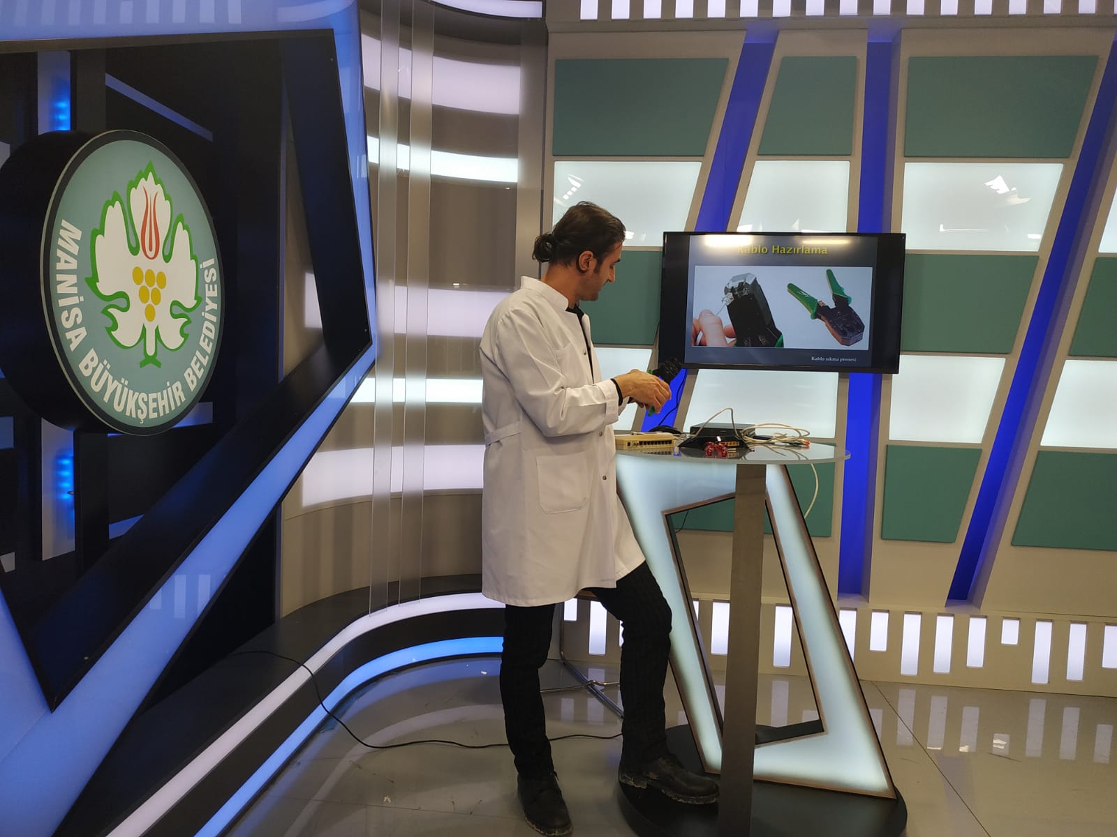 Manisa Büyükşehir Belediye Başkanı Cengiz Ergün tarafından Manisa’nın tanıtımı noktasında aktif rol oynaması için hayata geçirilen Manisa Büyükşehir Belediyesi Televizyonu, koronavirüs salgını nedeniyle okulların kapanması ve uzaktan eğitim sistemine geçilmesi sebebiyle stüdyolarını TRT EBA TV için ders çekimi yapan öğretmenlere açtı.Koronavirüs tedbirleri kapsamında okulların kapatılarak uzaktan eğitim modeline geçmesinin ardından öğretmenler, derslerini TRT EBA TV üzerinden öğrencilere ulaştırıyor. Kısa adı EBA olan Eğitim Bilişim Ağı, koronavirüs nedeniyle tatil edilen okullarda öğrencilerin derslerini aksatmaması adına önemli bir görev üstleniyor. Öğretmenler ilkokul, ortaokul ve lise öğrencilerine bu sayede ders veriyor. Bu kapsamda Yunusemre Mesleki Teknik Anadolu Lisesi öğretmenleri de, Bilişim Teknolojileri alanına ait meslek derslerini videoya almak için Manisa Büyükşehir Belediyesinden teknik destek talebinde bulundu.Teknik Donanım Desteği